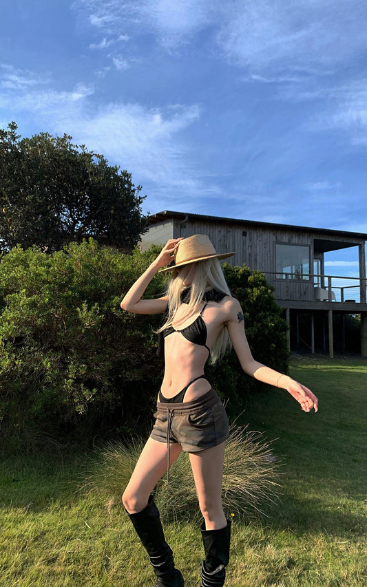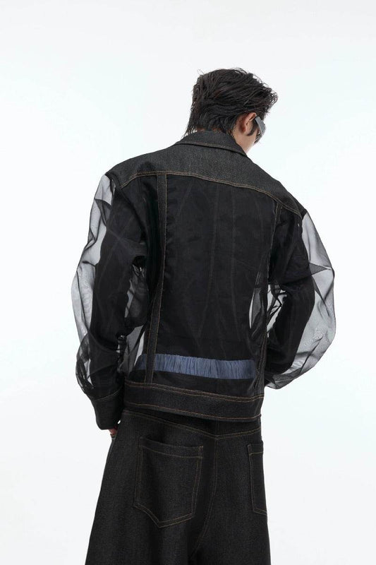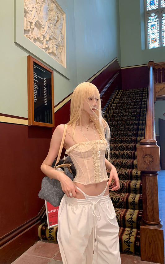 Sheer Mesh Corset Top with Ruffle Lace Trim