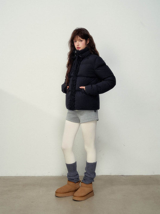 Black Ruffled Short Down Jacket