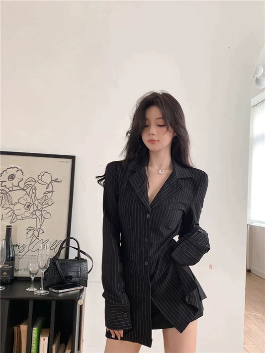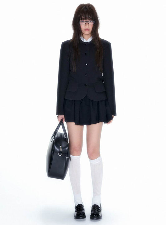 Black Round Heart Button Suit Jacket