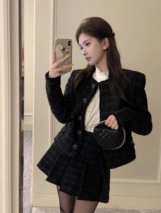 Black Tweed Jacket & Skirt Set