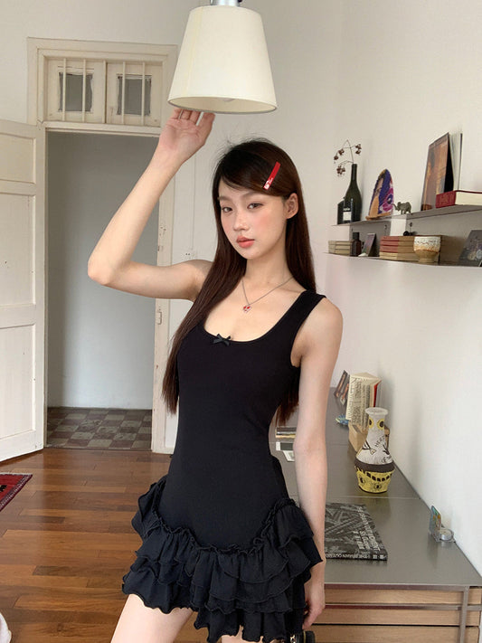 Black Ruffle Skirt Dress