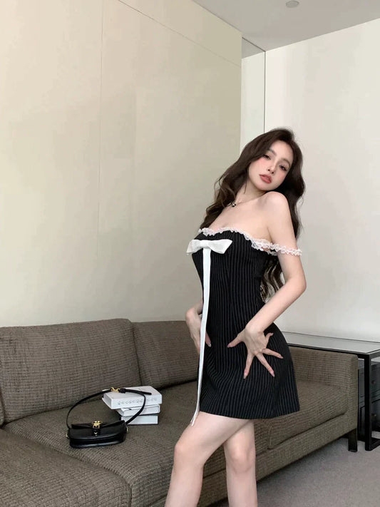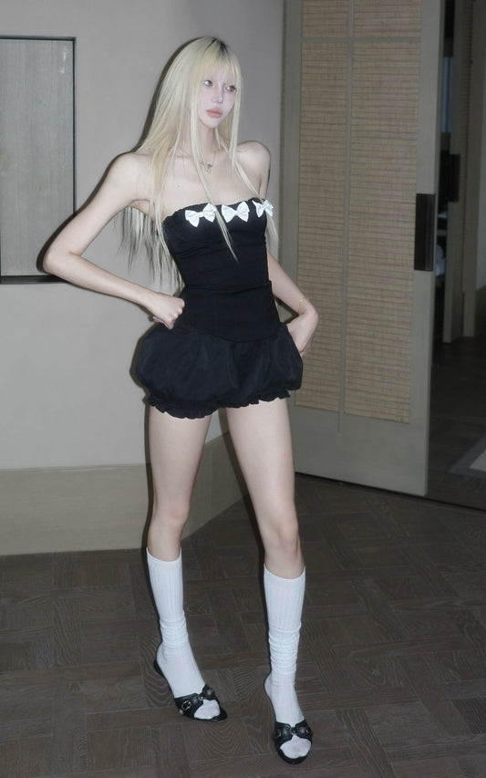 Bow Detail Strapless Top and Bubble Skirt Shorts Set