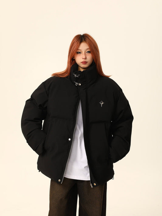 Collar Metal Emblem Puffer Jacket