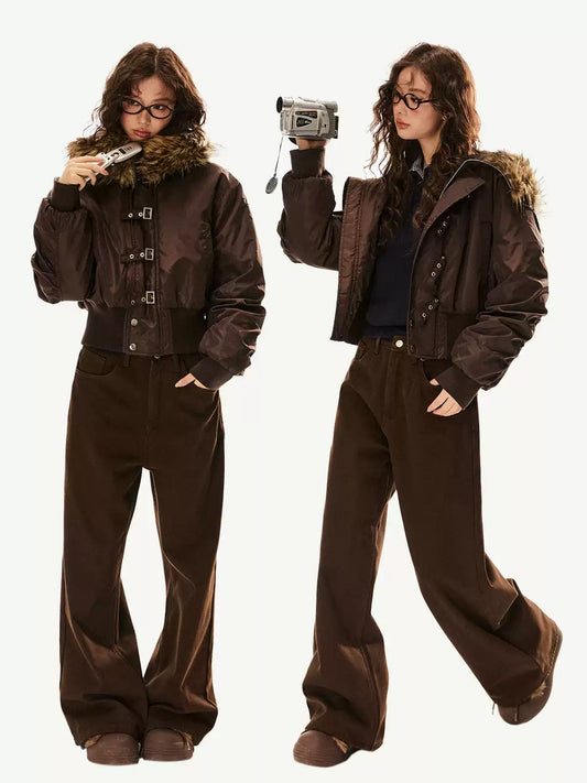 Clasp Fur Hood Cropped Jacket