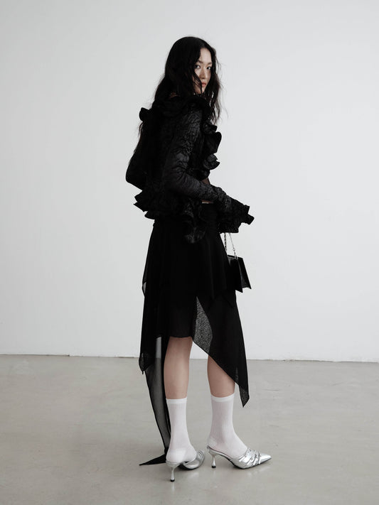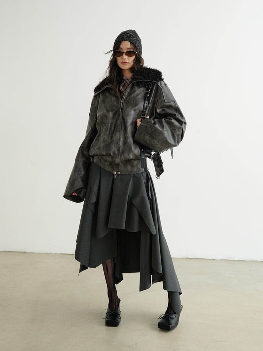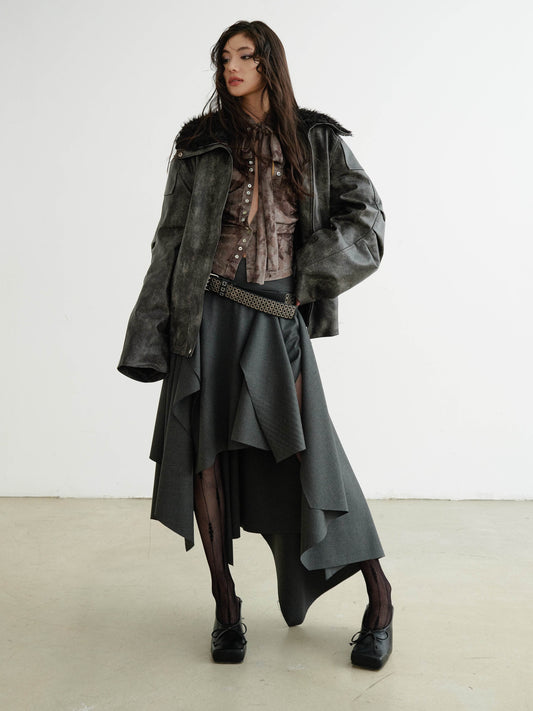 Edgy Tiered Asymmetric Skirt With Studded Belt
