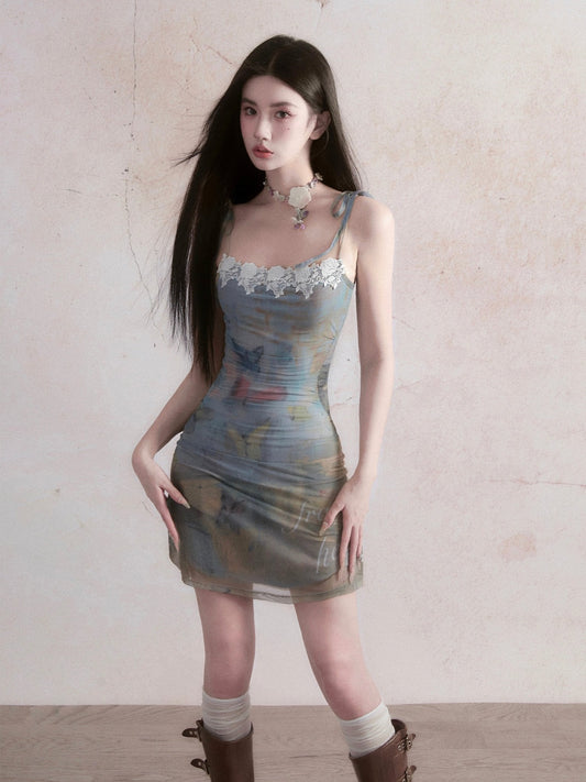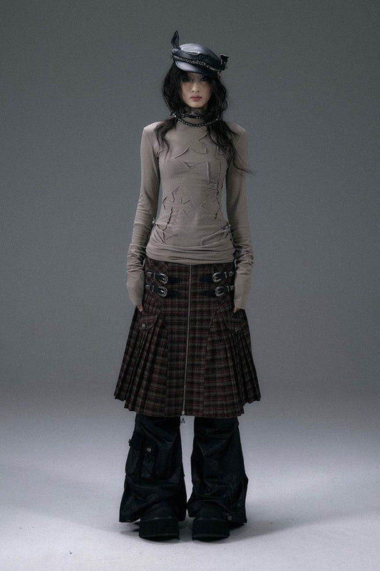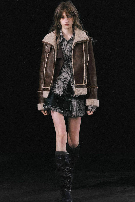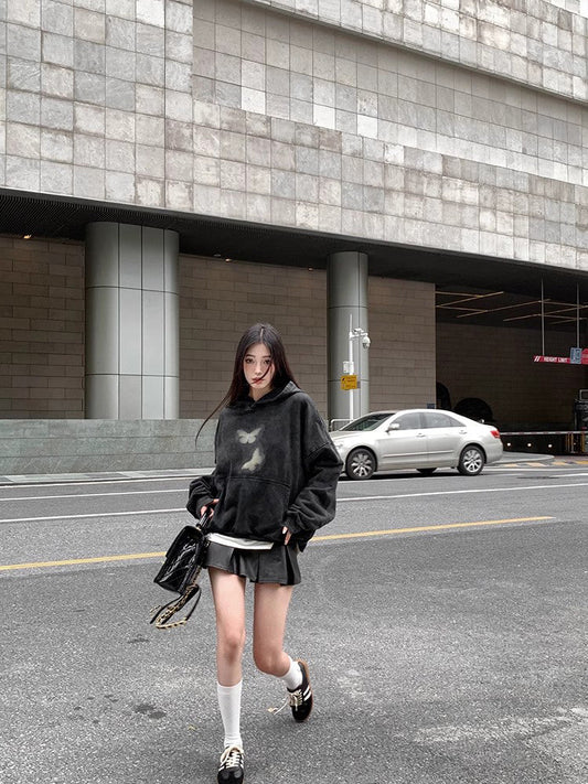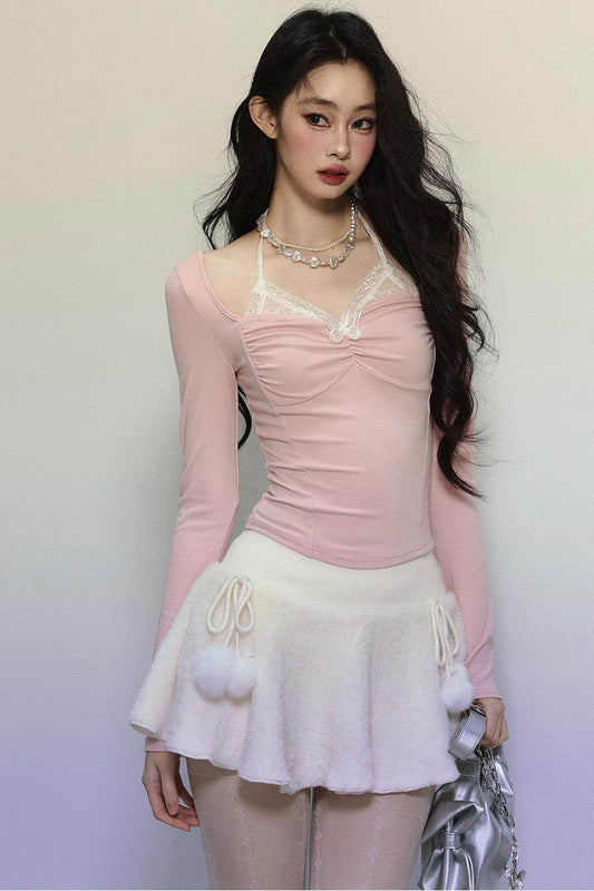 バタフライボウステッチフェイクツーピースプリーツトップ