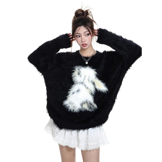 バタフライ刺繍 長袖 Vネック Tシャツ