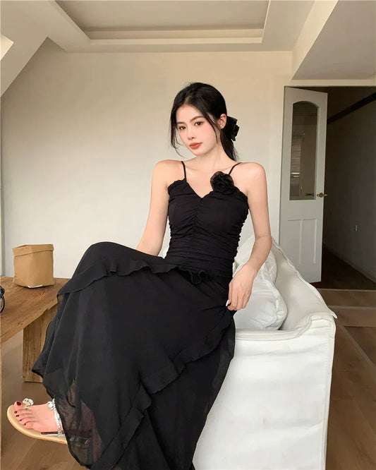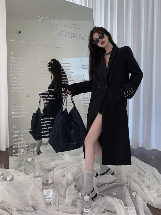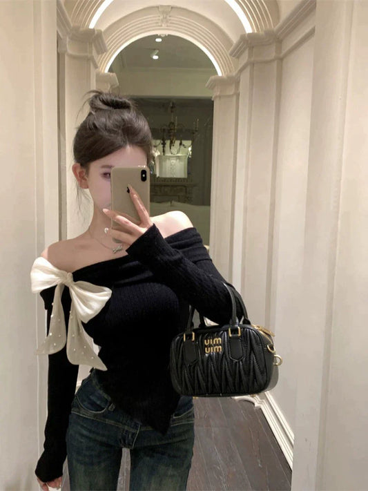 シックなオフショルダーニットレースドレス&コートのセットアップ