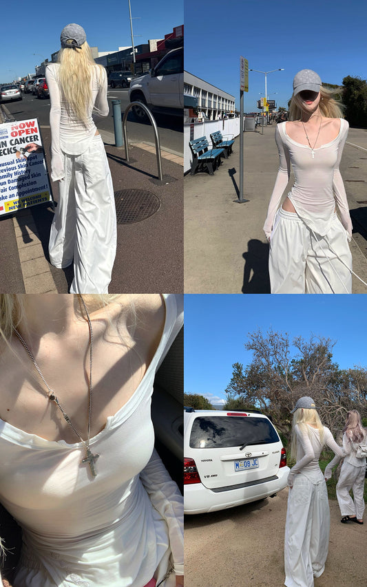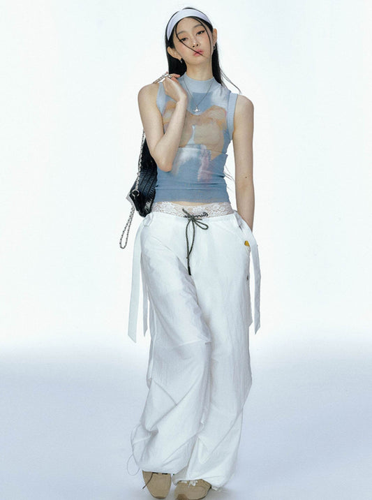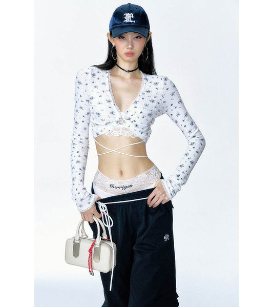 Curriges フローラル Vネック レース ストラップ クロップトップ