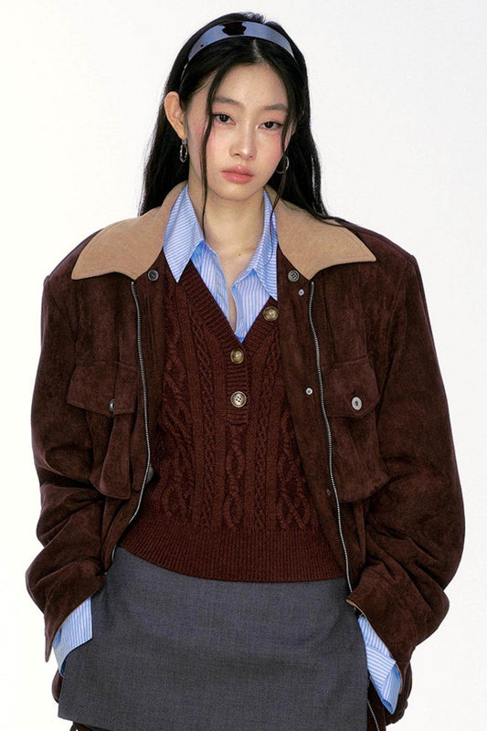 ファーカラースエード厚手ジャケット