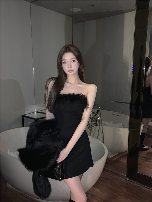 ファーカラースリムニットセータートップス