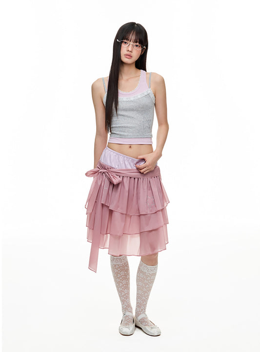 Glitter Star Layered Mesh Ruffle Skirt