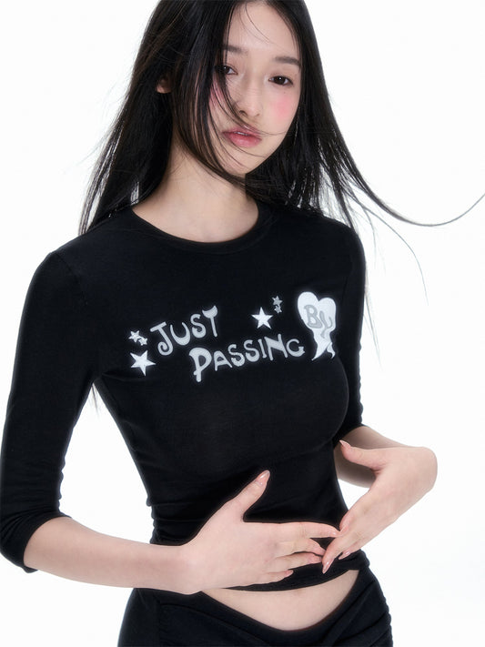 グリッタースリーブストレッチスリムフィットトップス