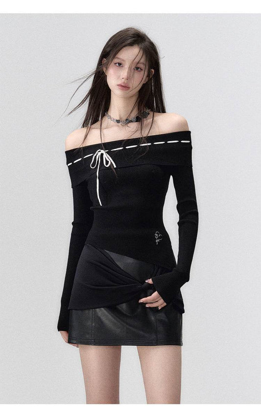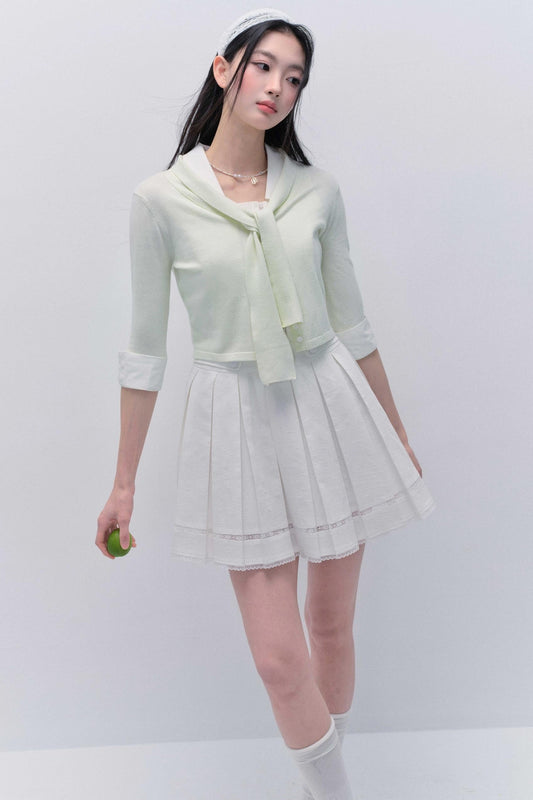 Knit Eyelet Mini Skirt with Drawstring Waist