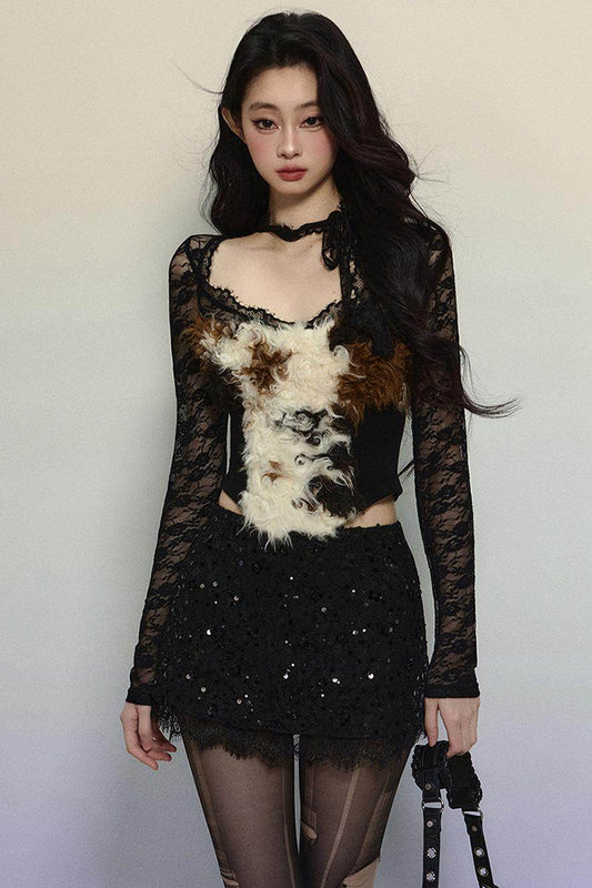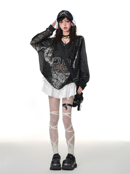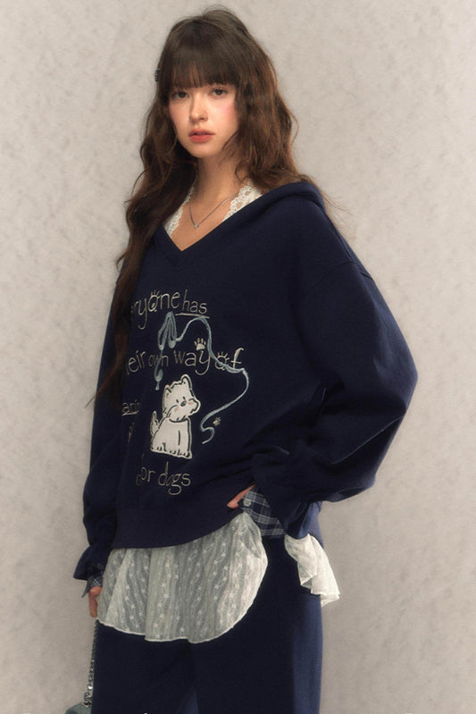 Lace Jacquard Slim Fit Hooded Sweatshirt