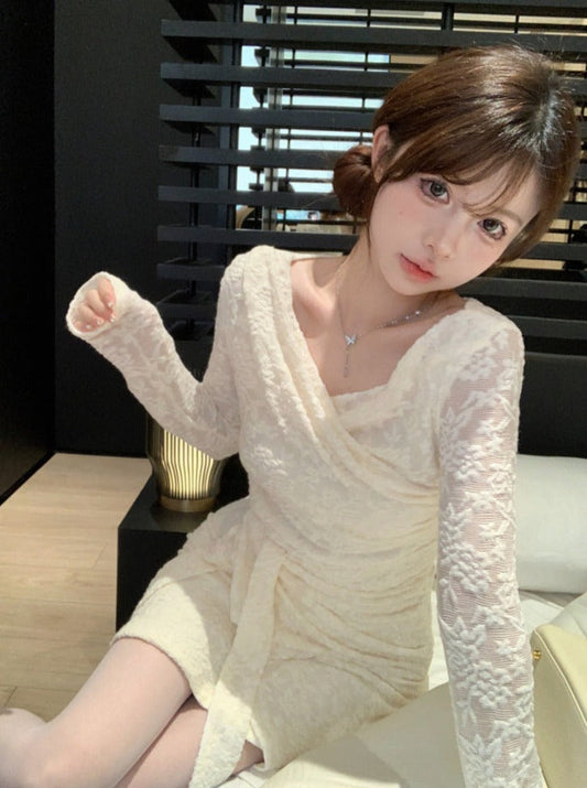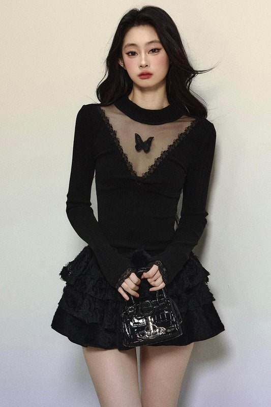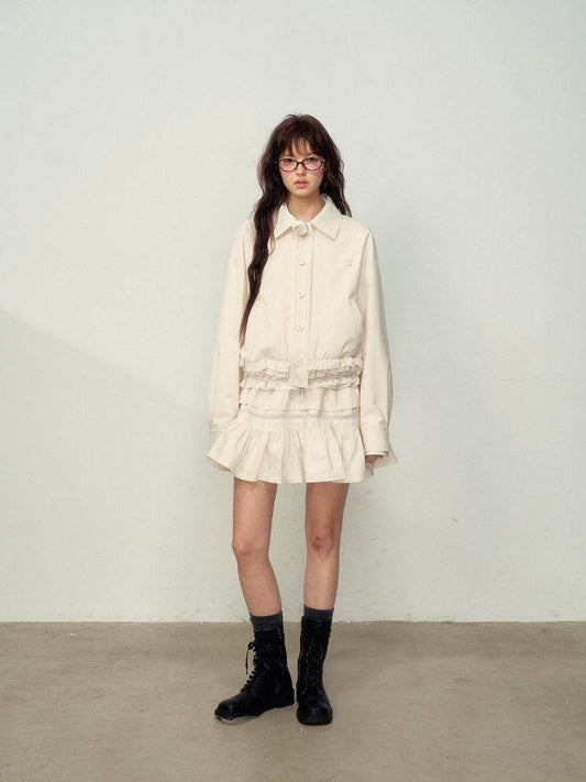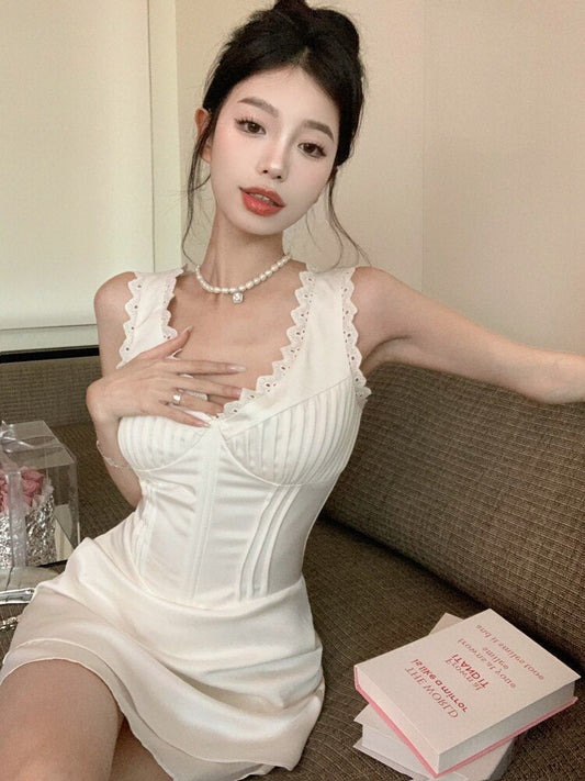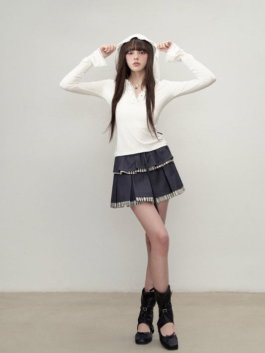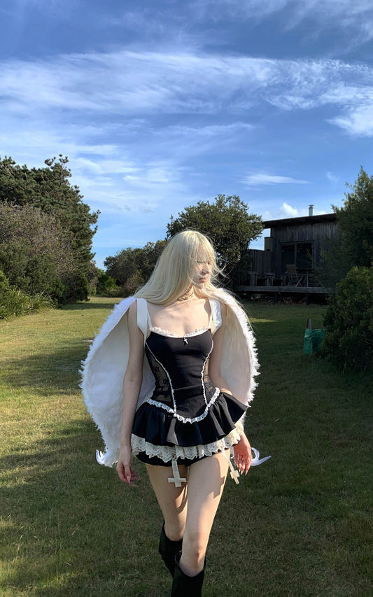 Lace-Trimmed Vest and Skirt Set with Cross Detail