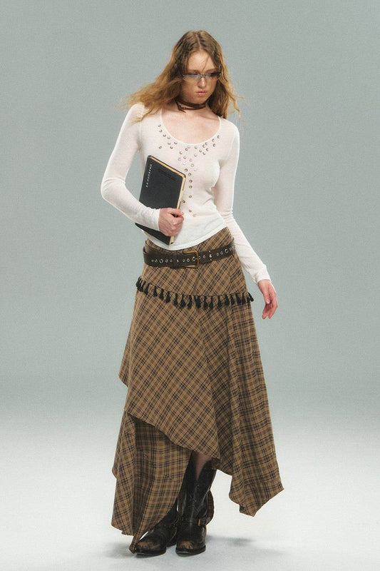 レイヤードチェック柄マキシスカート
