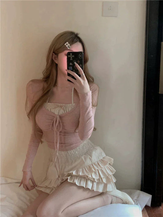 レイヤードトップス&フリルスカートセット