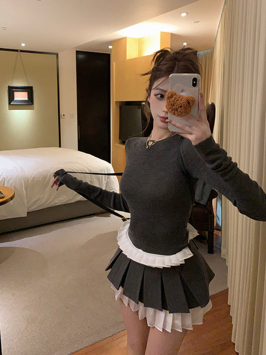 レイヤードプリーツスカート&セーターセット