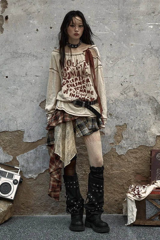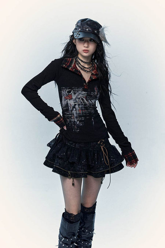 レイヤードチェックスカート