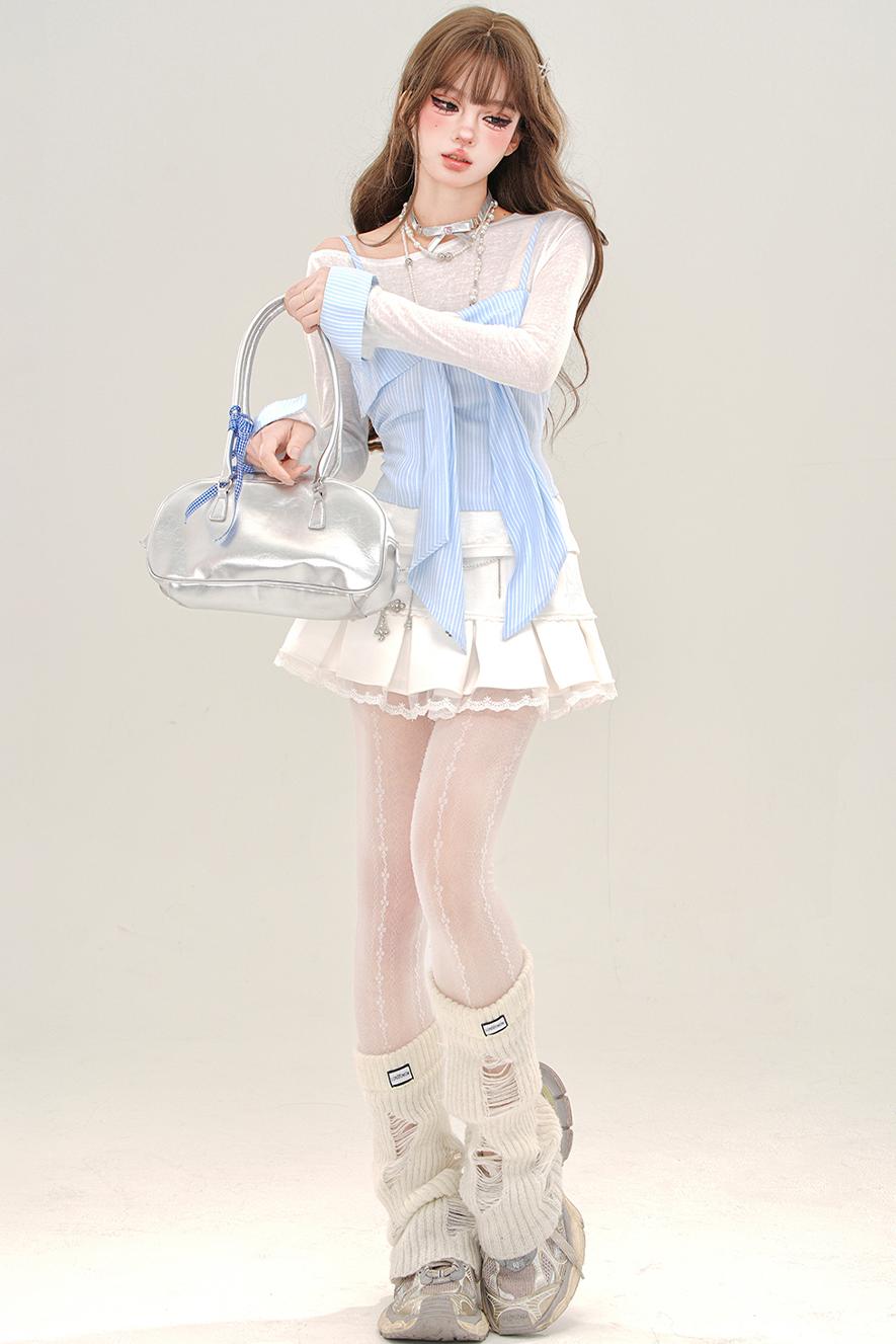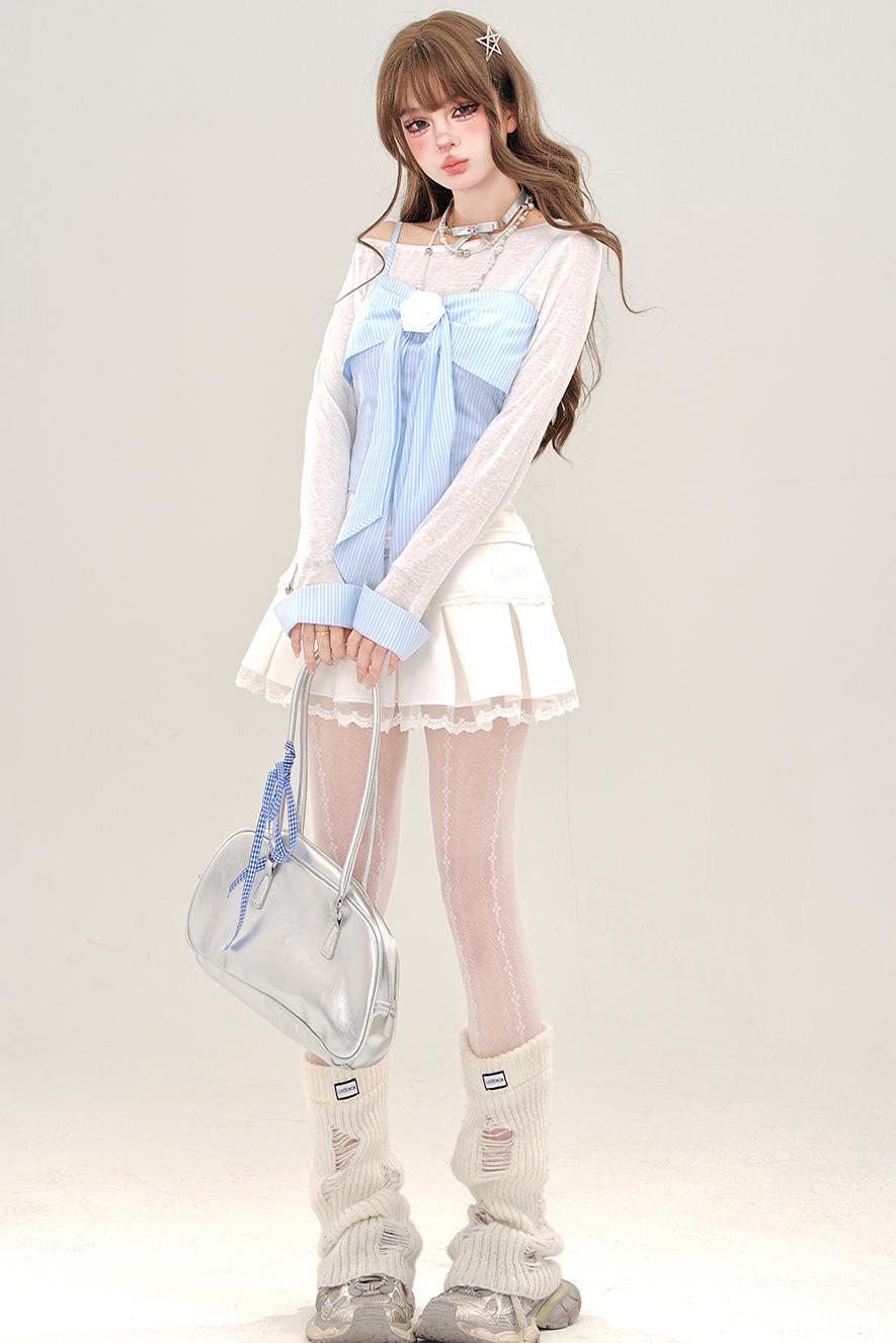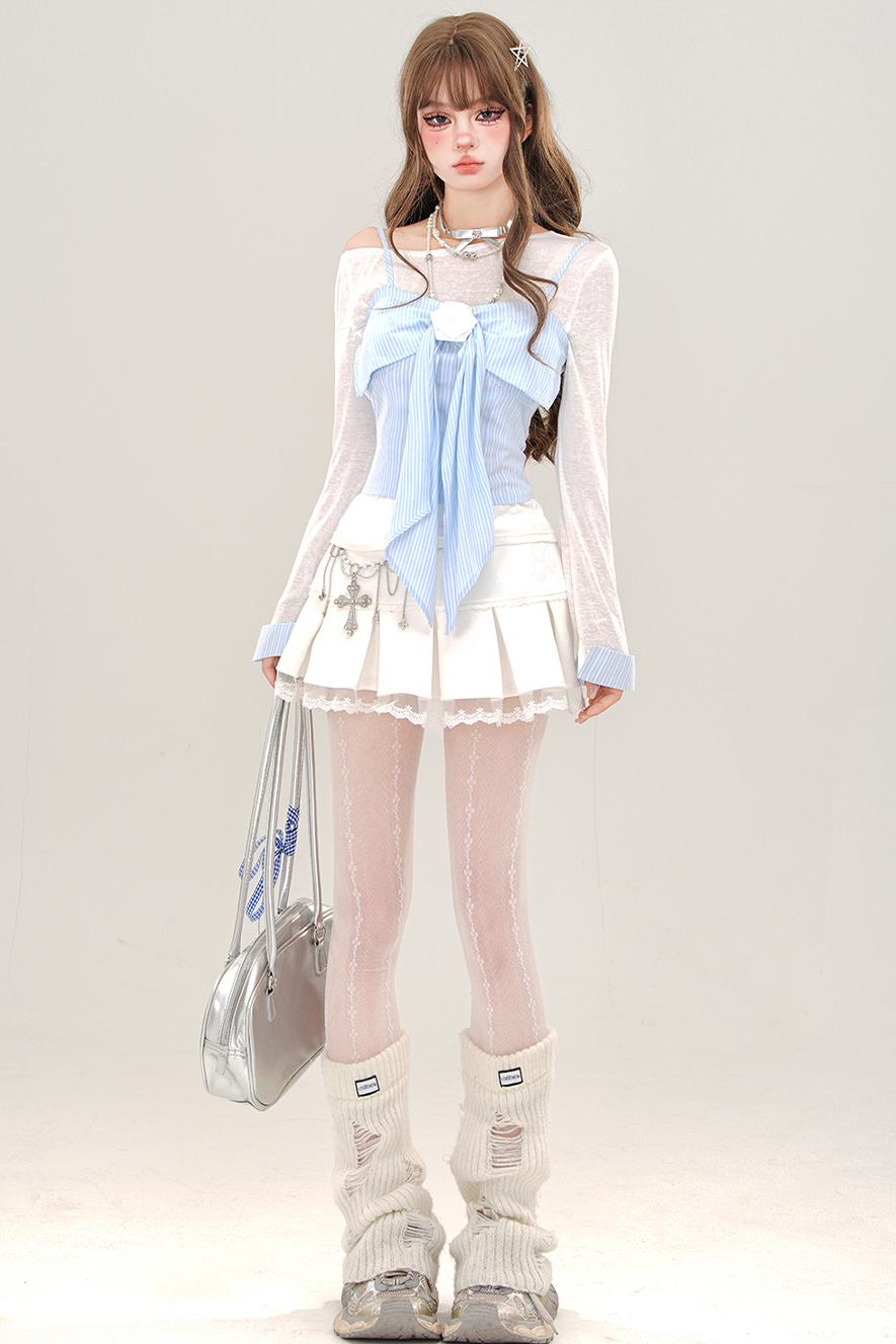 @jess.guan cozy in our Marla Top & Skirt Set + Black Bear Ears Hat 🖤