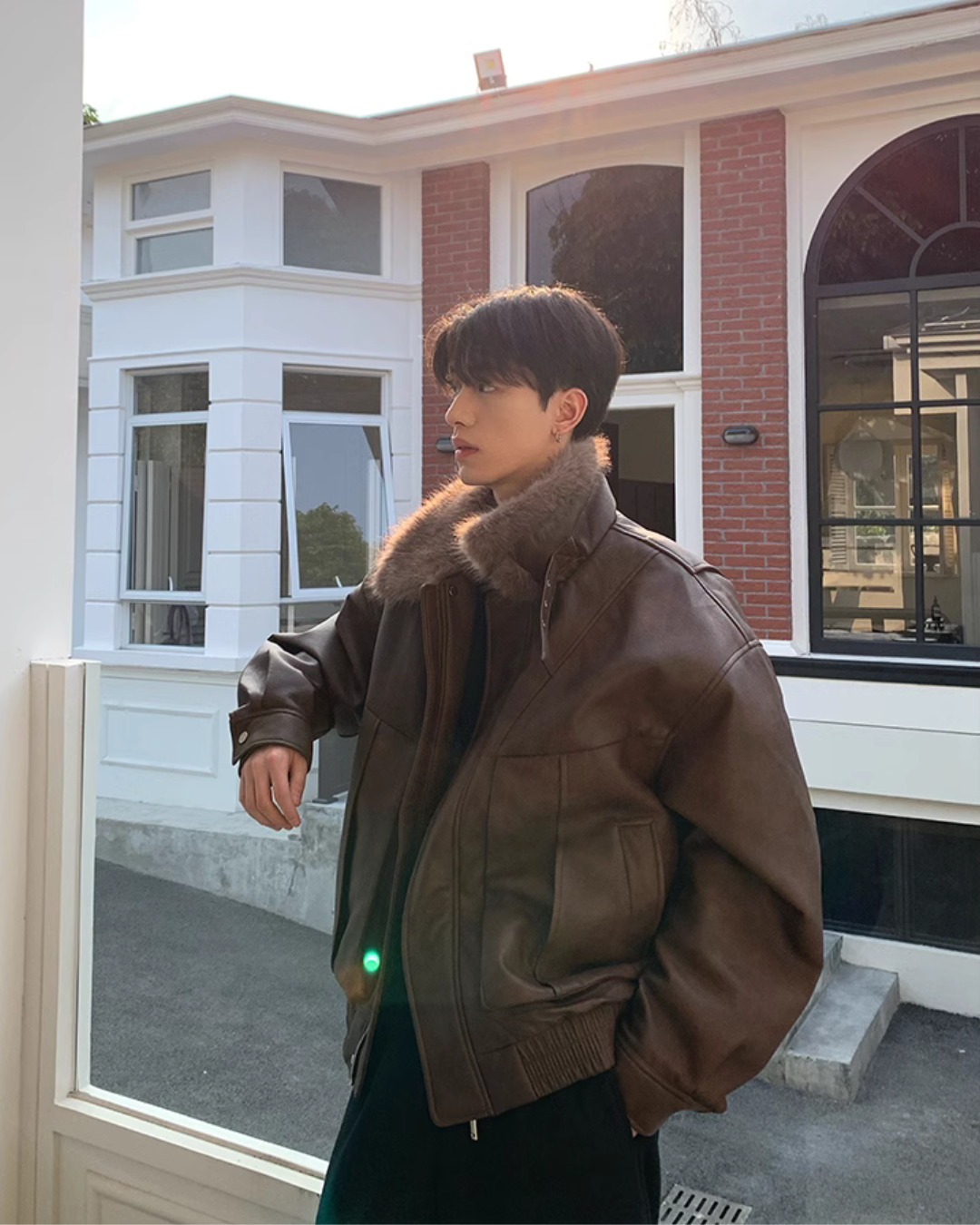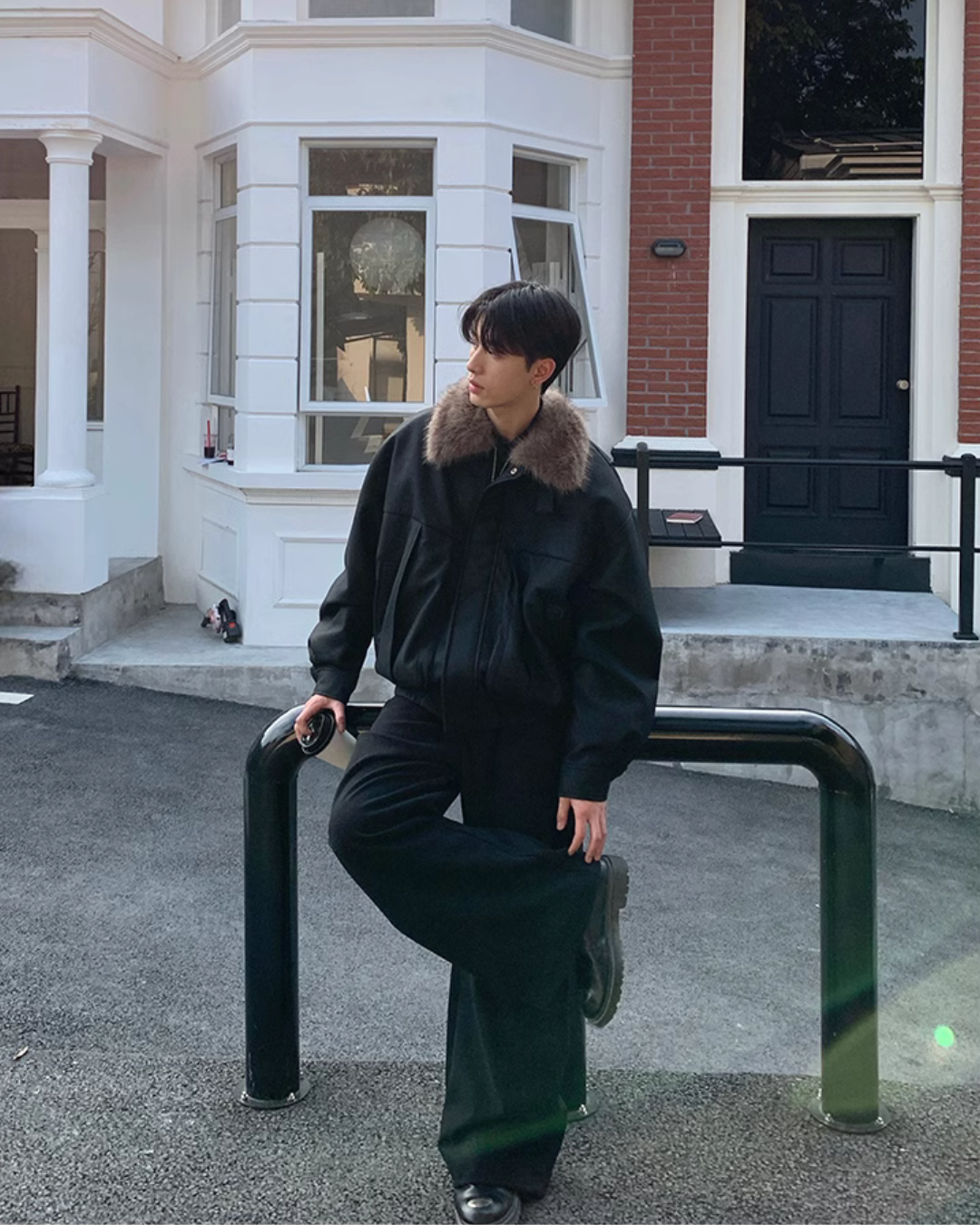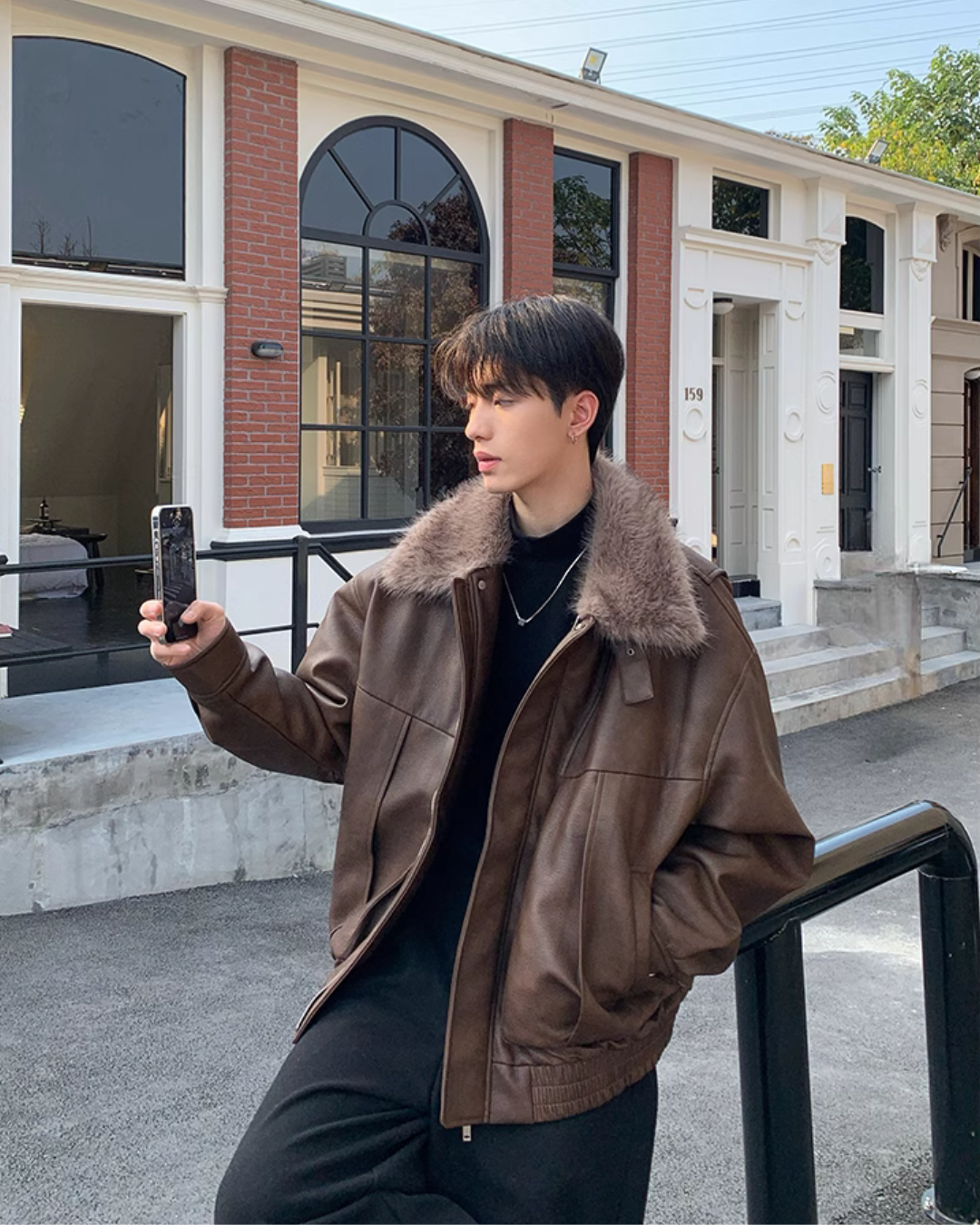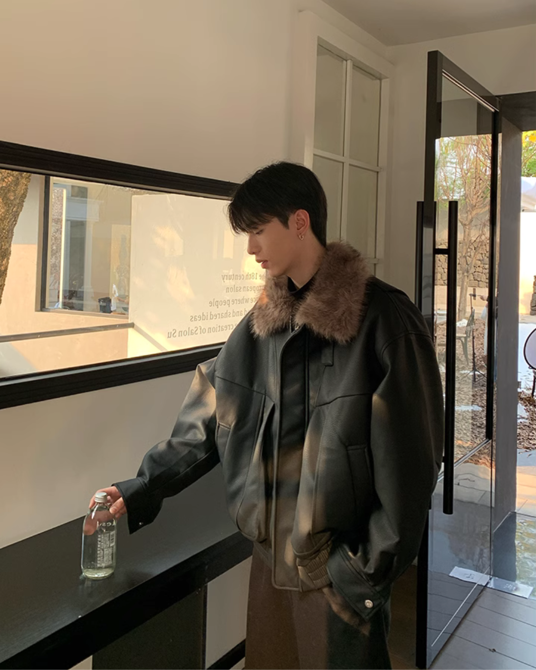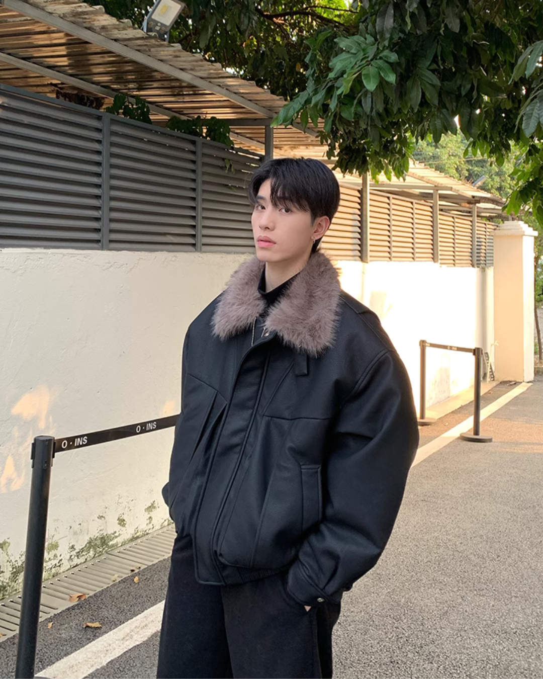 トレンド感のある柔らかいフェイクレザーのボンバージャケット。