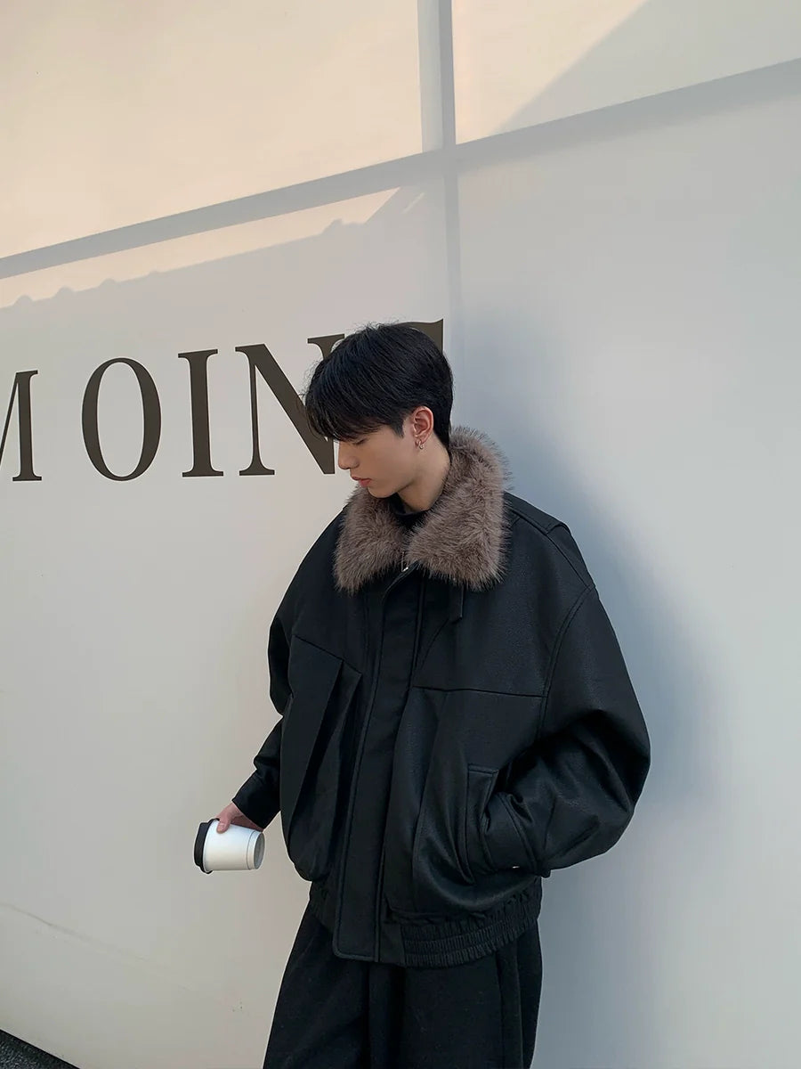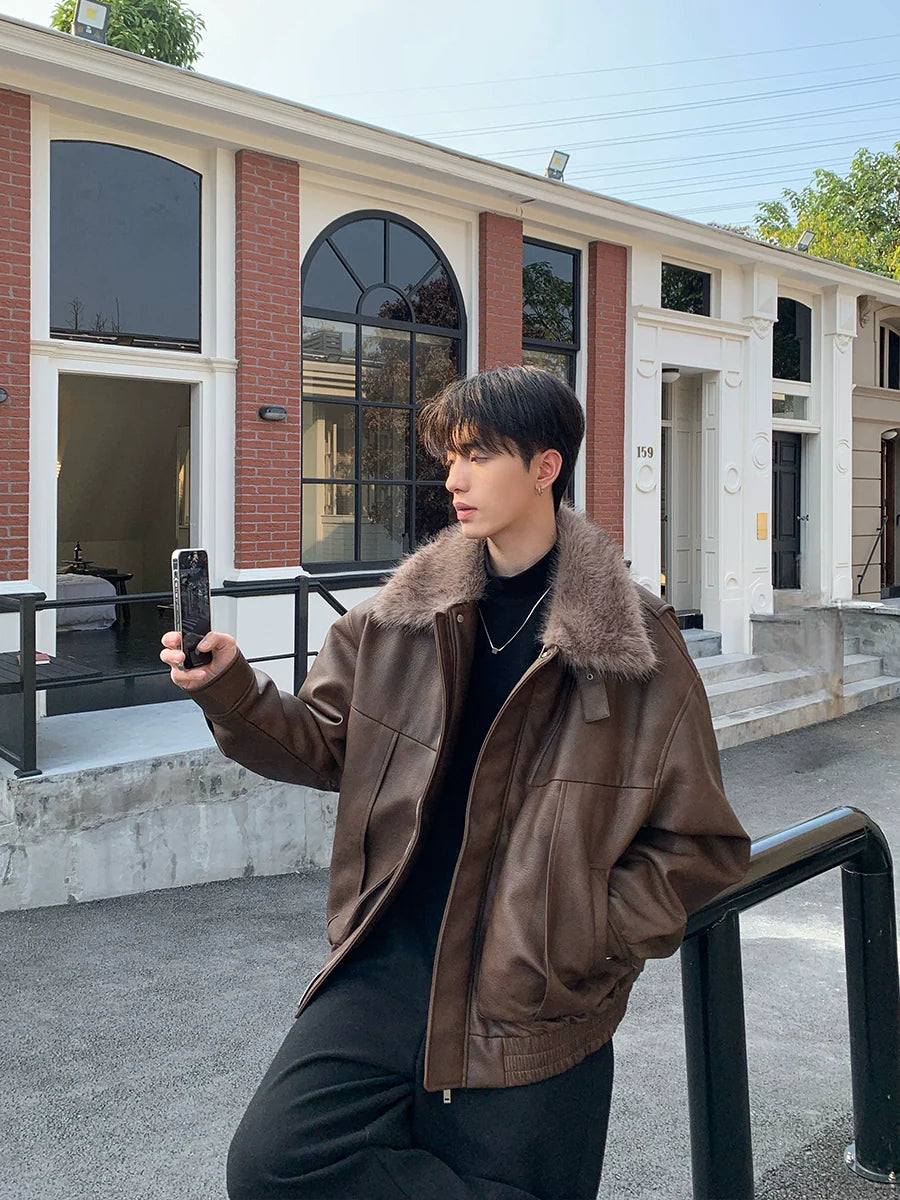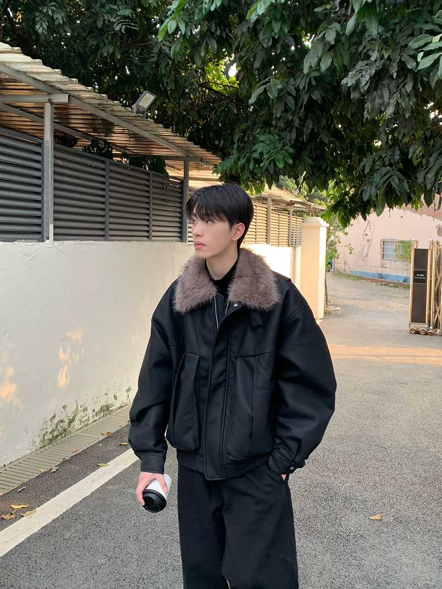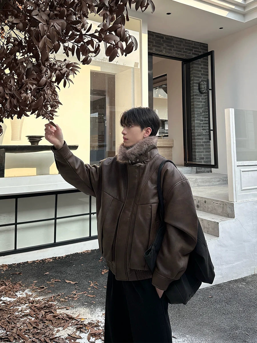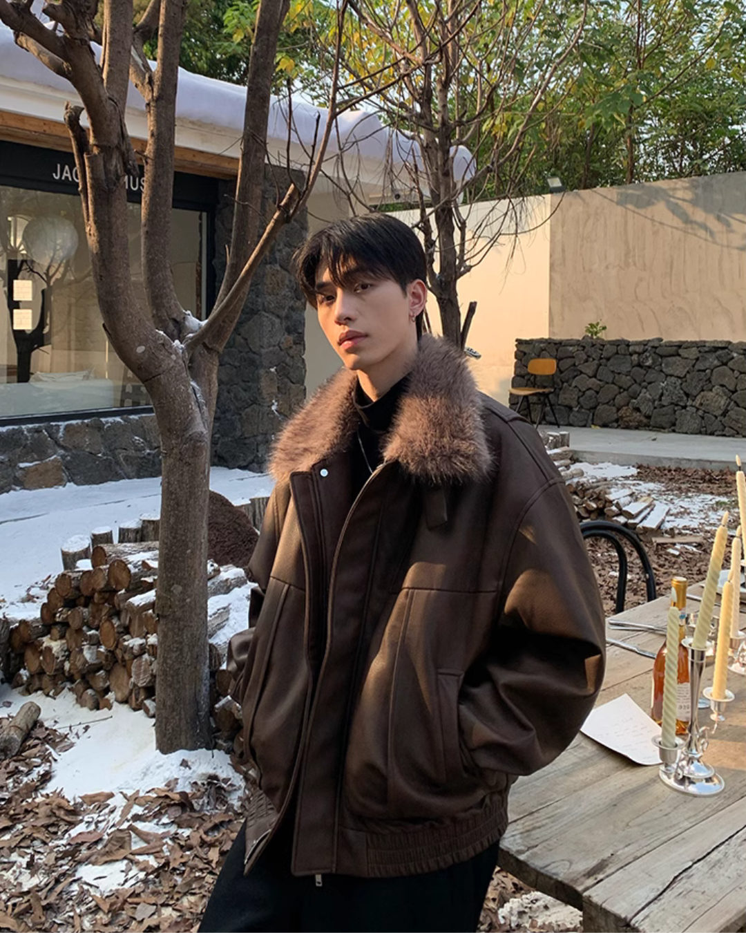 トレンド感のある柔らかいフェイクレザーのボンバージャケット。