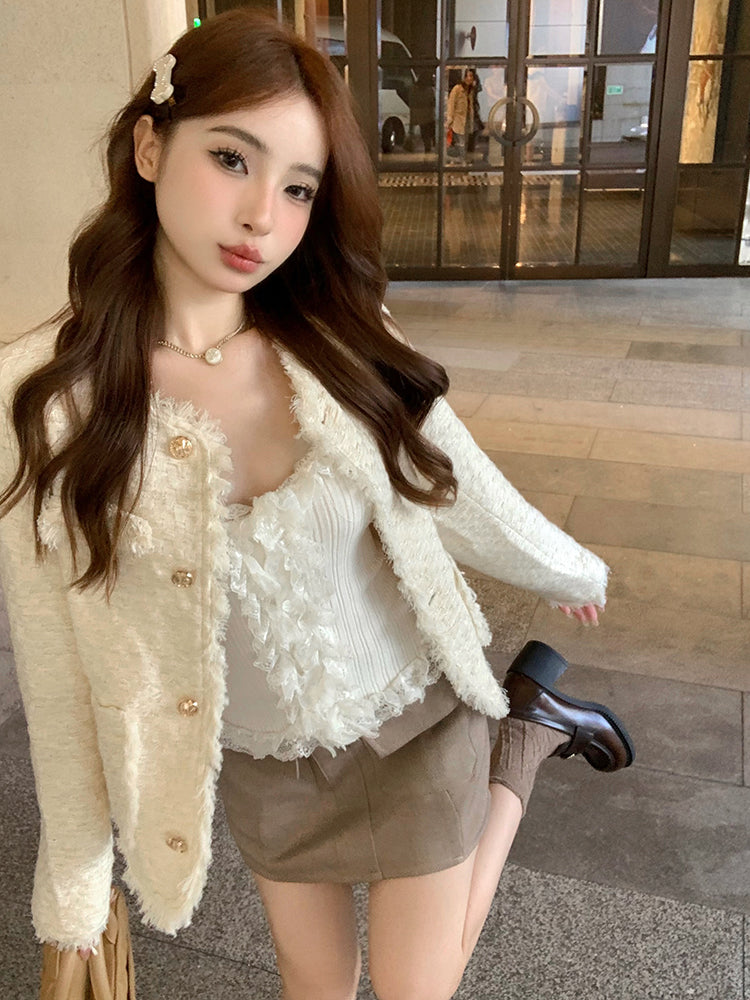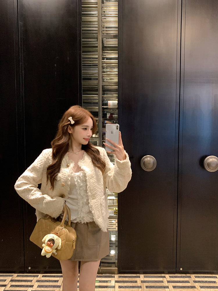 @jess.guan cozy in our Marla Top & Skirt Set + Black Bear Ears Hat 🖤