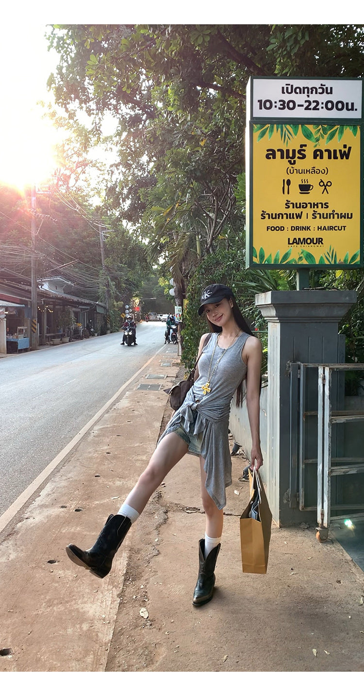 @jess.guan cozy in our Marla Top & Skirt Set + Black Bear Ears Hat 🖤