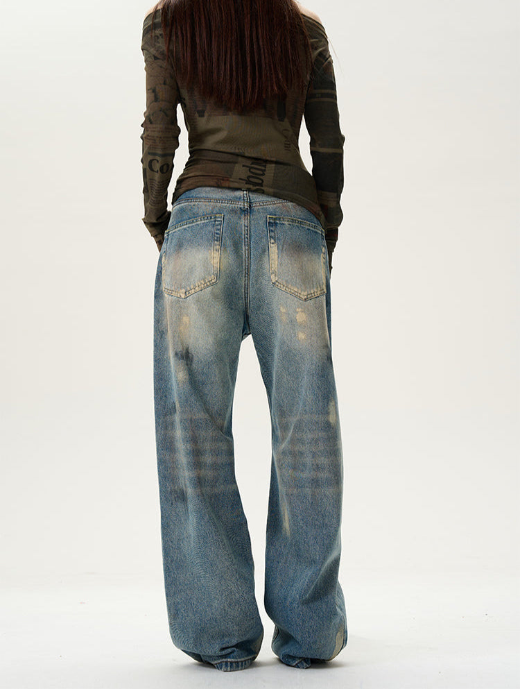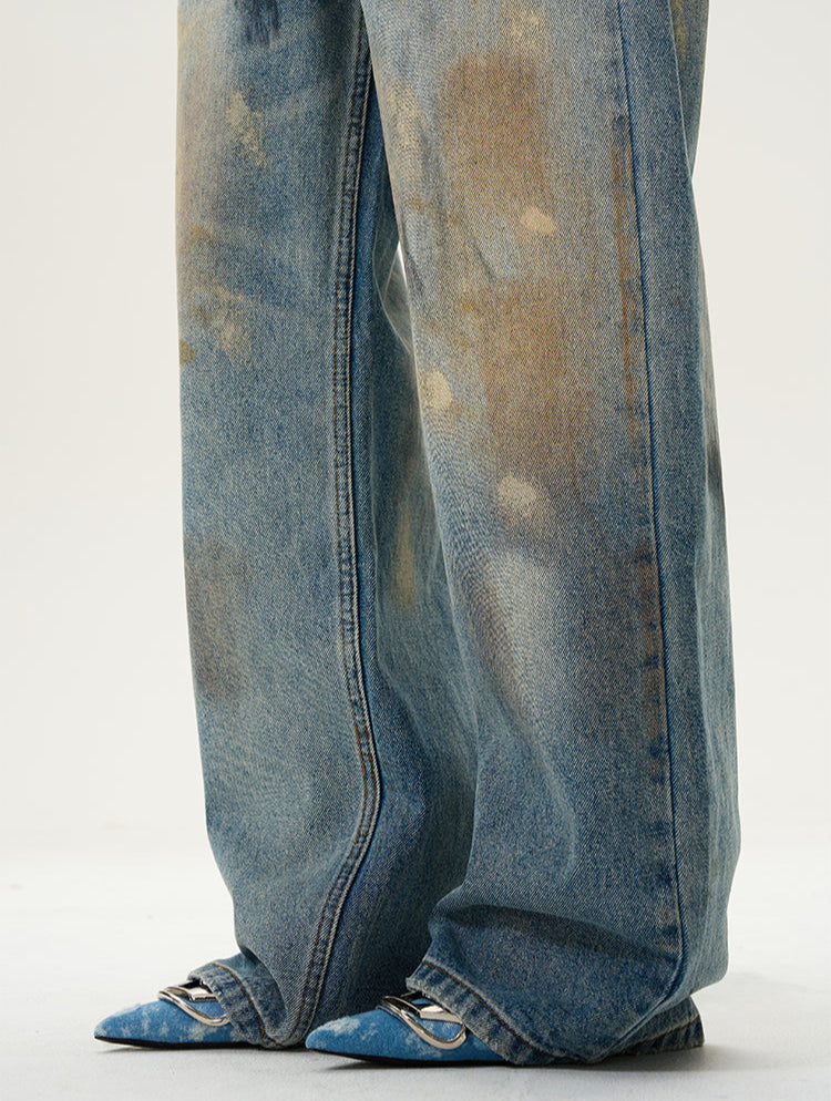 ハイウエストワイドレッグペイントスマッジジーンズ