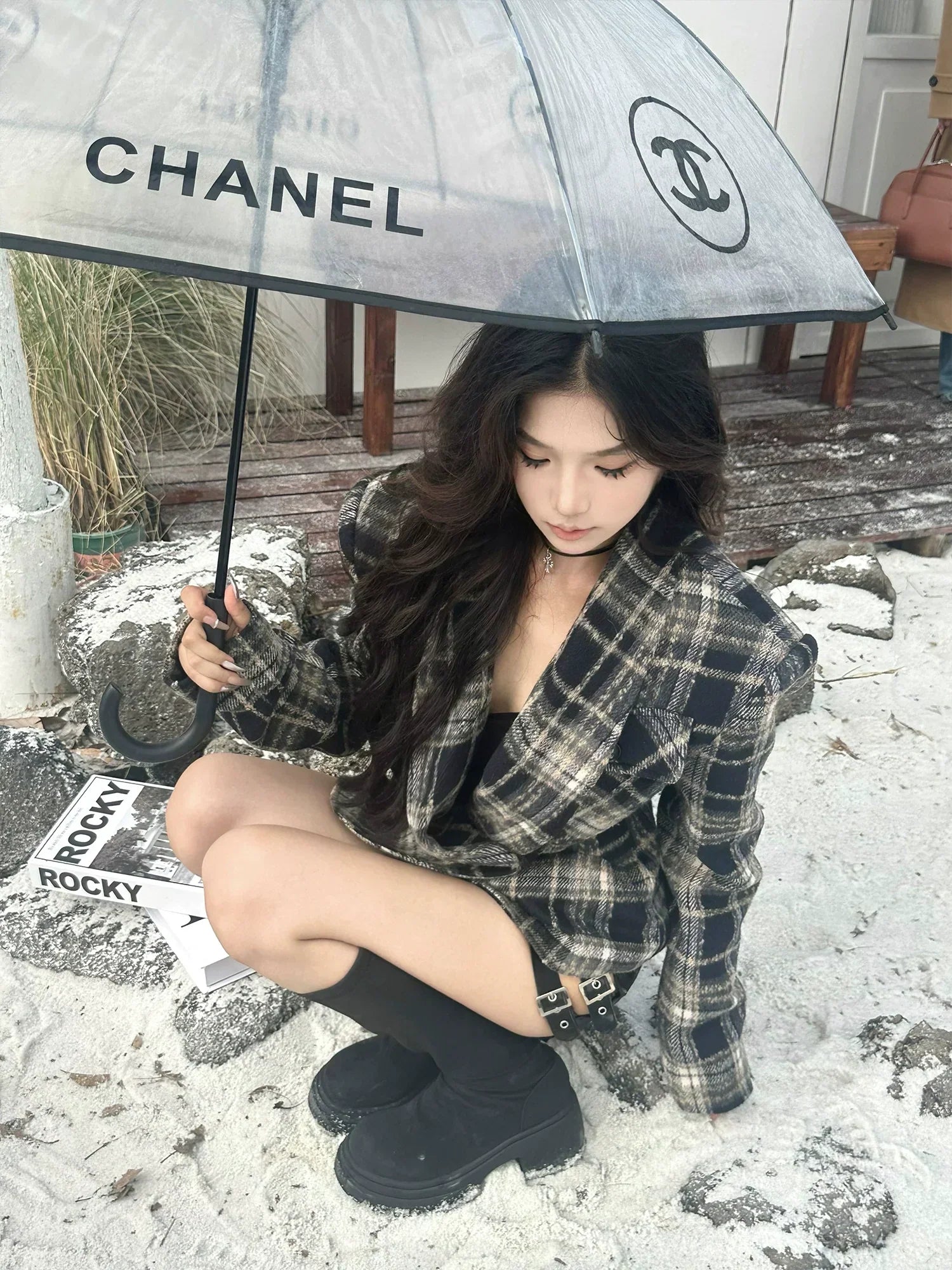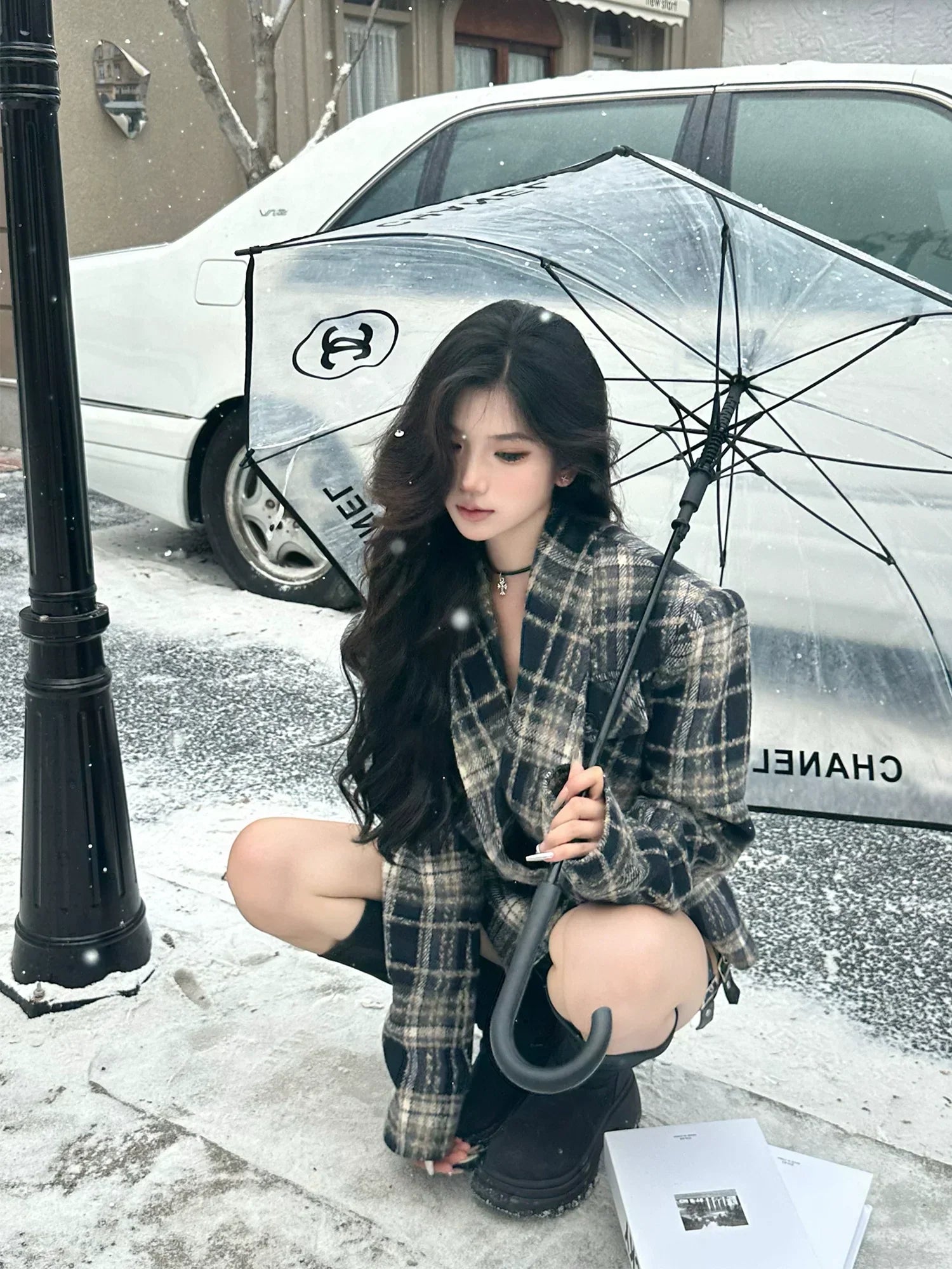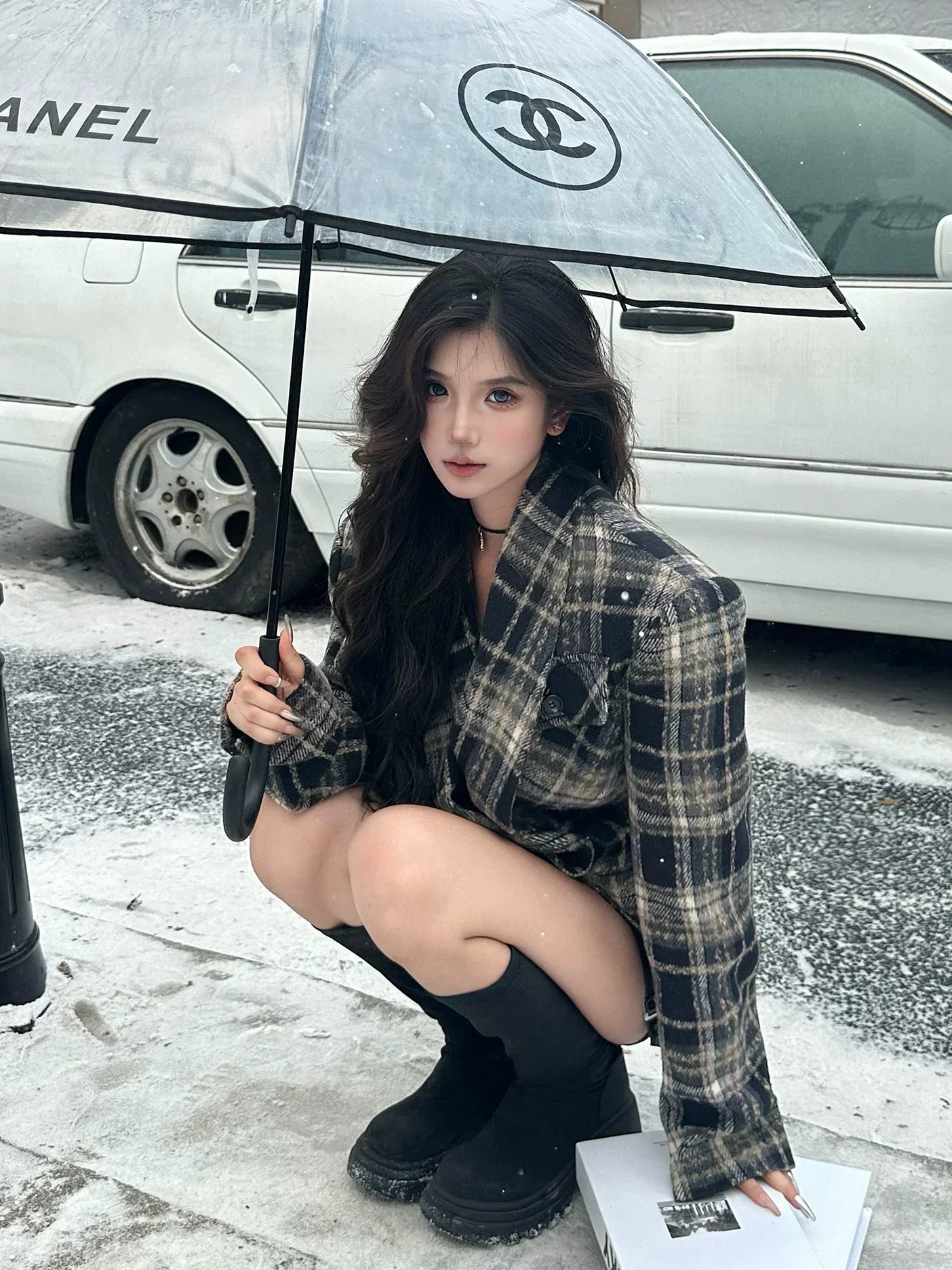 @jess.guan cozy in our Marla Top & Skirt Set + Black Bear Ears Hat 🖤