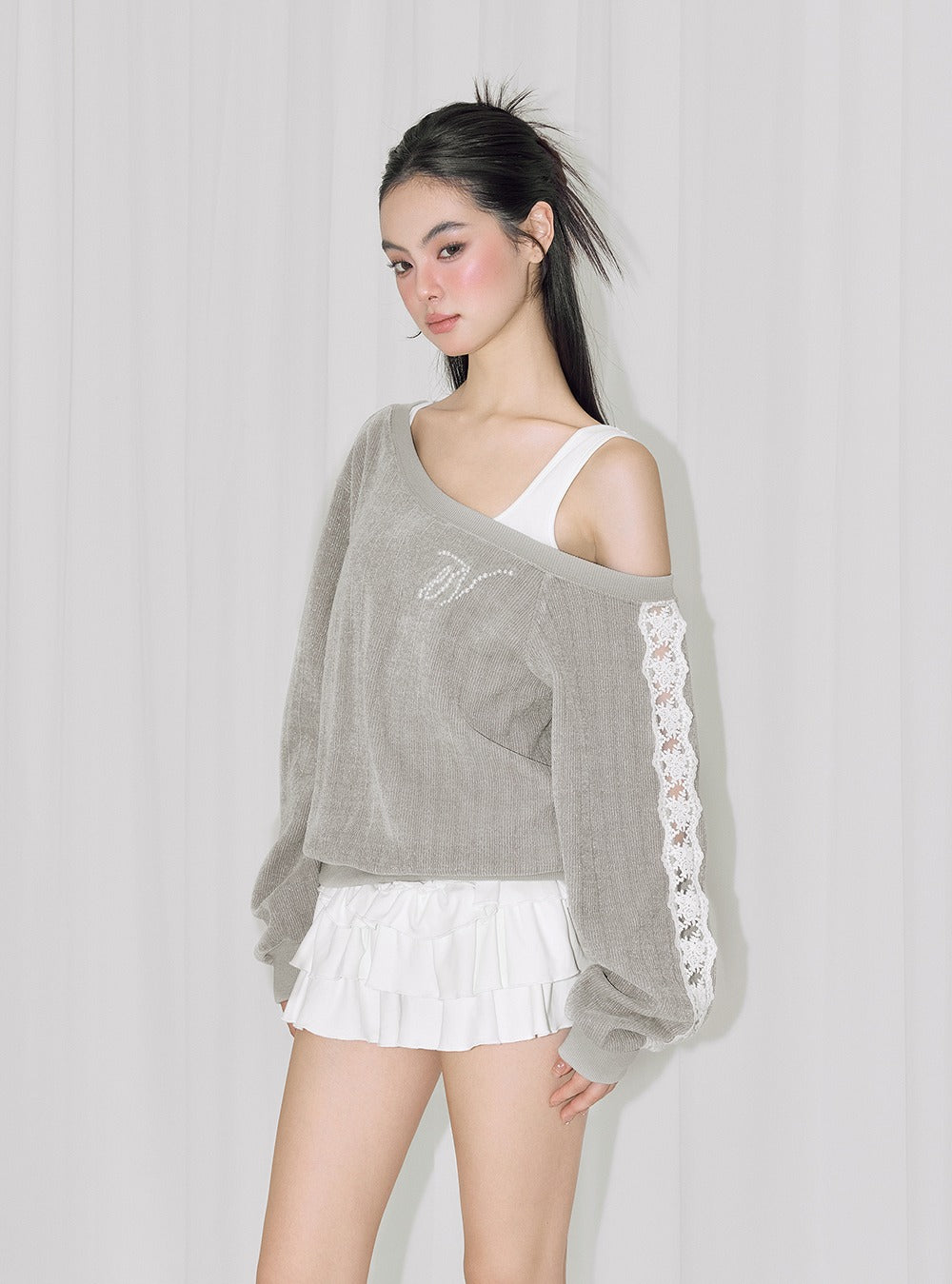 Lace Chenille Hollow Long-Sleeved Top