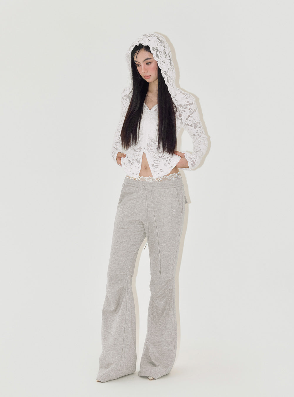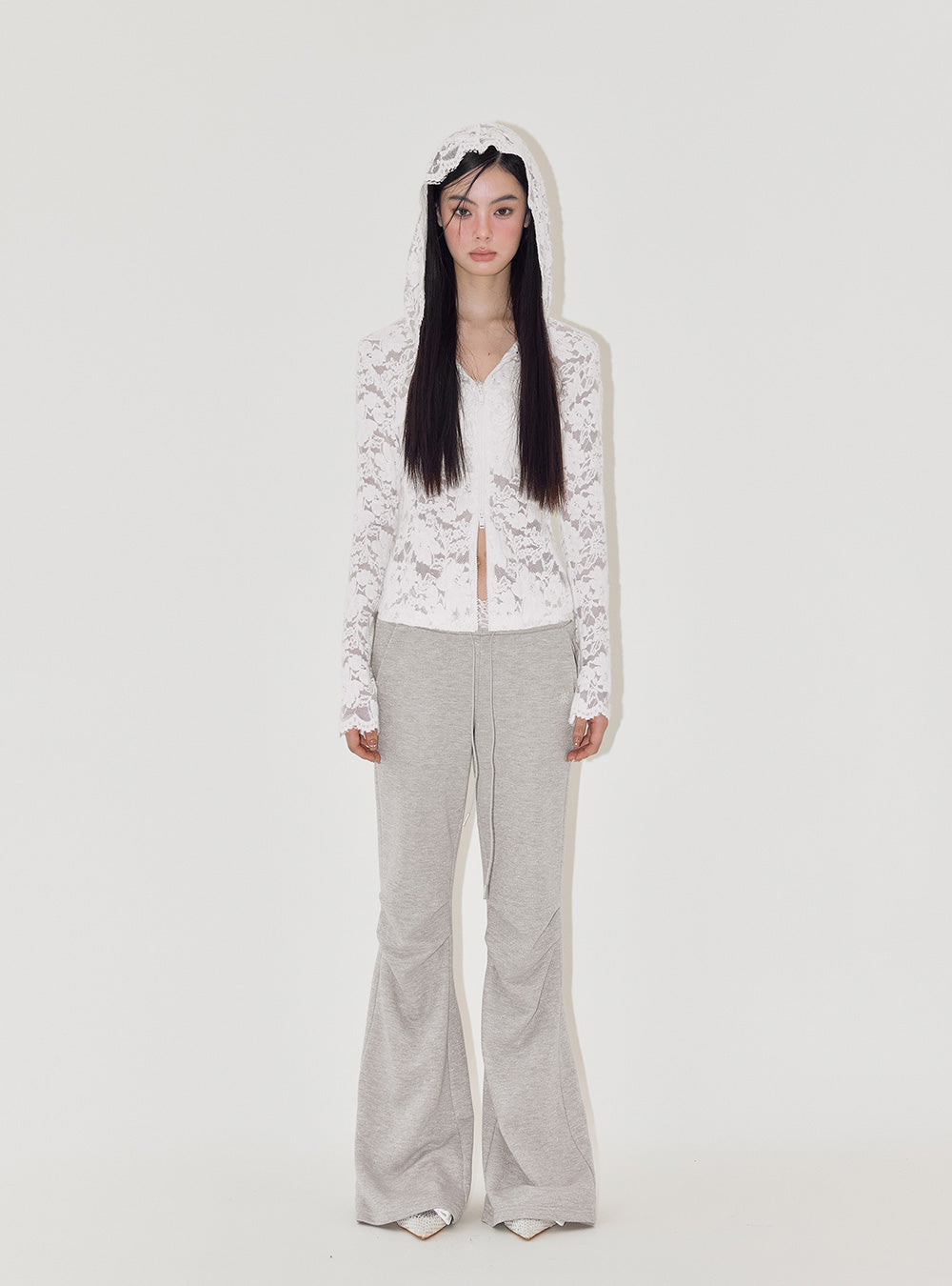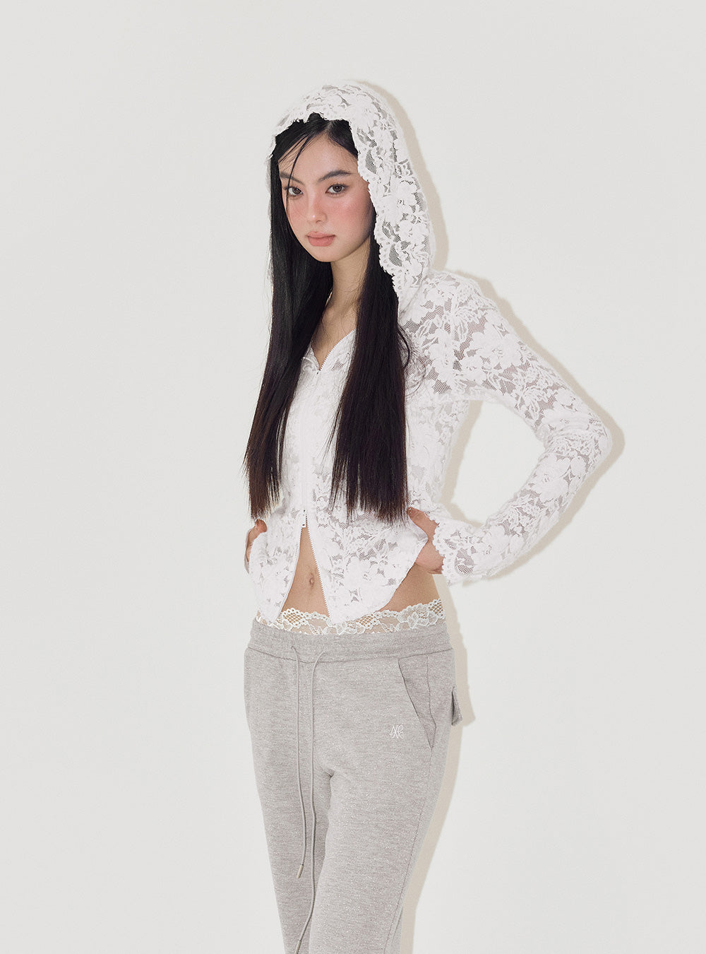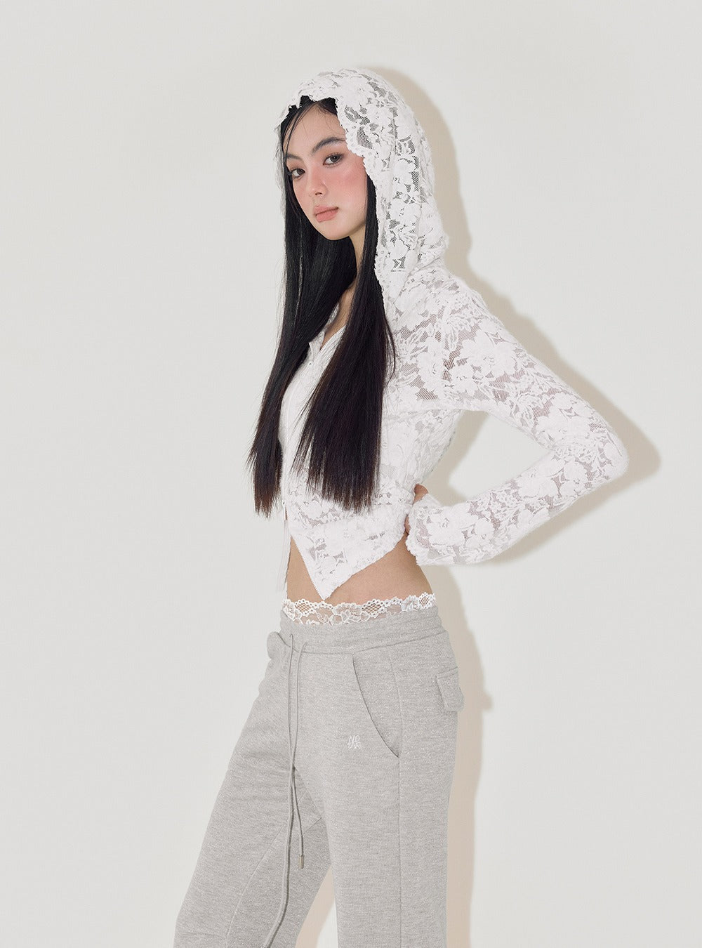 Lace Jacquard Slim Fit Hooded Sweatshirt