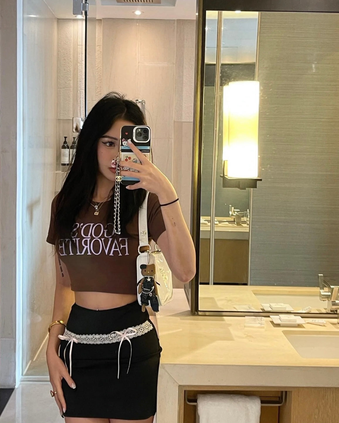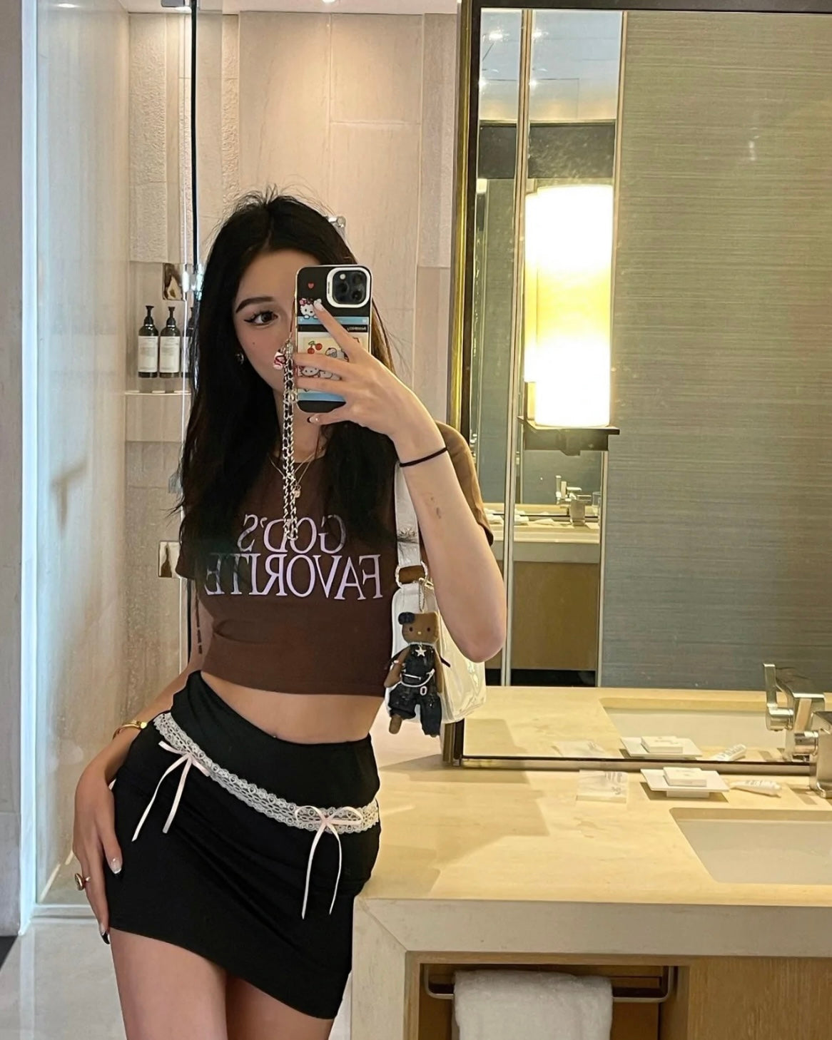 @jess.guan cozy in our Marla Top & Skirt Set + Black Bear Ears Hat 🖤