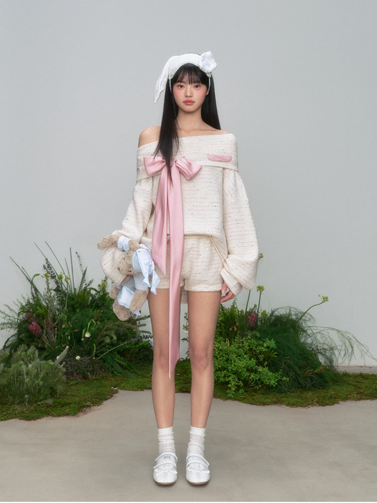 シックなワンショルダーニットトップス。ボウタイデザインがスタイリッシュで、カジュアルにもセミフォーマルにもぴったり。柔らかく伸縮性のある素材をブレンドし、快適な着心地を実現しています。
