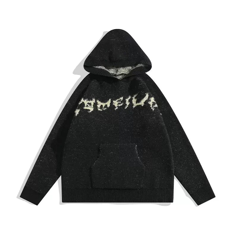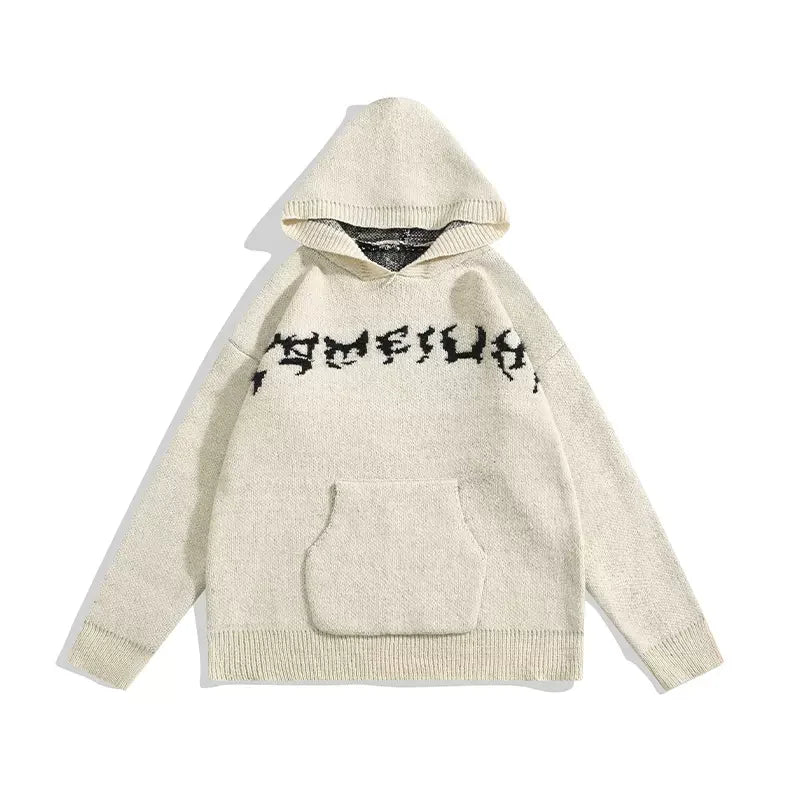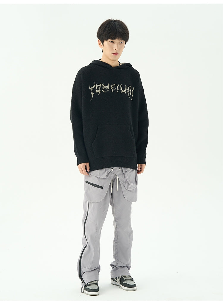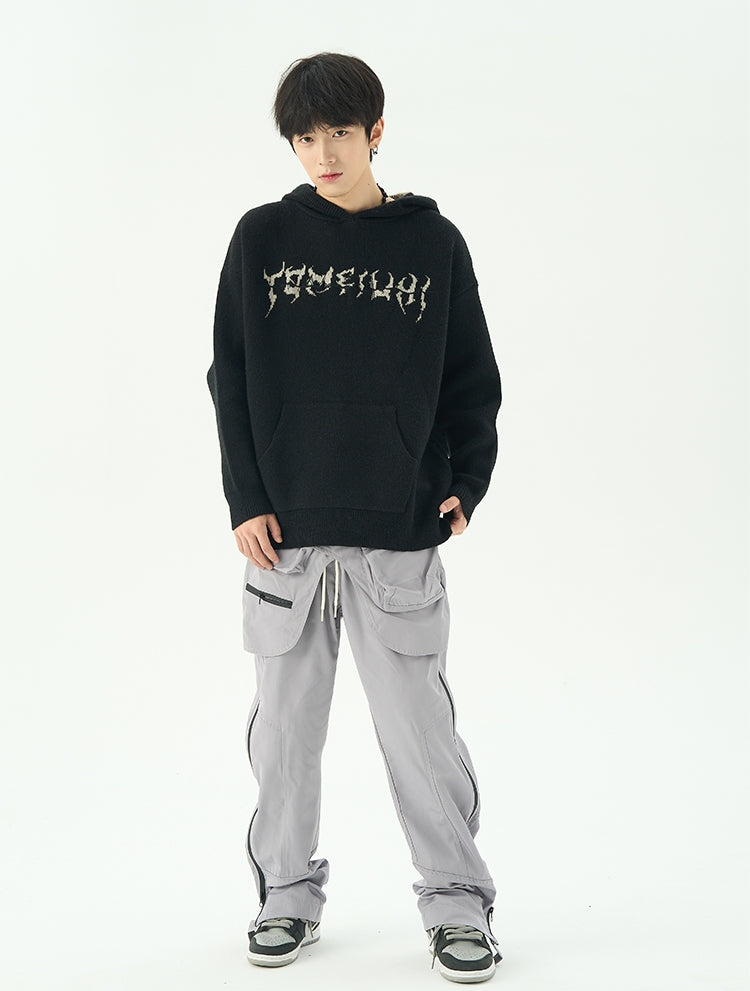オーバーサイズ刺繍ニットパーカー