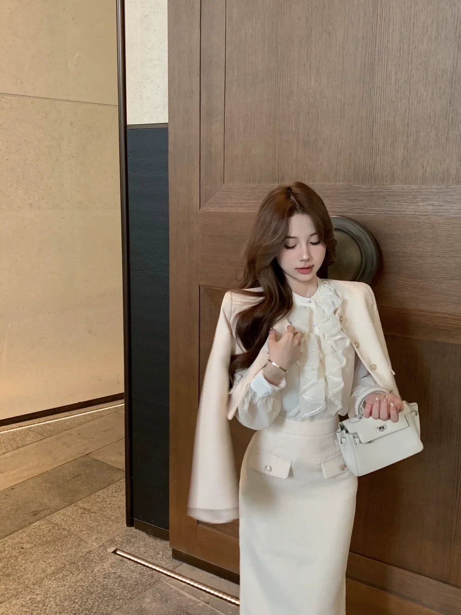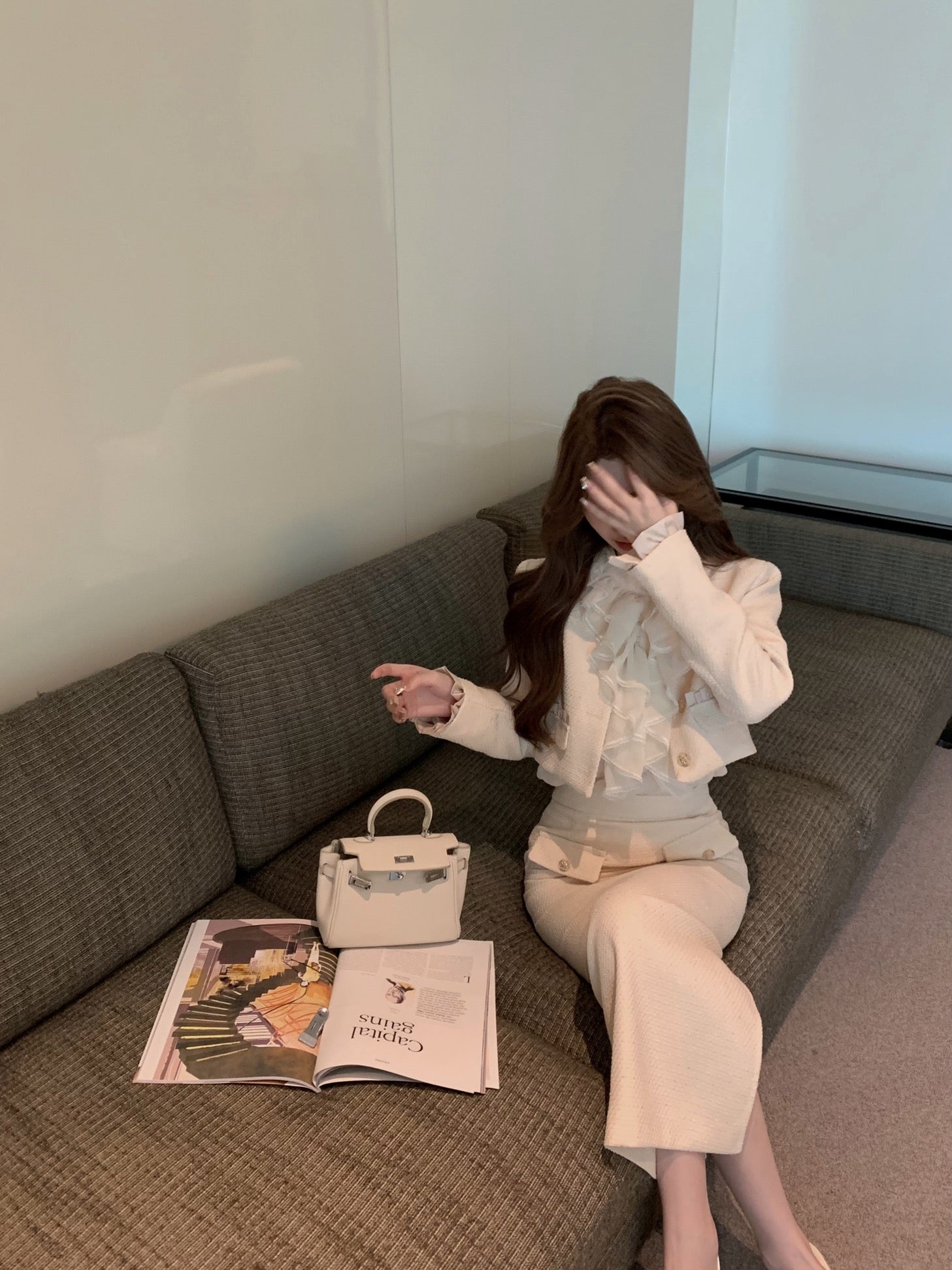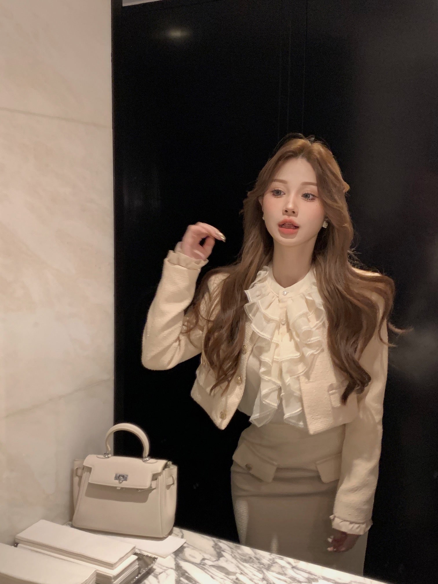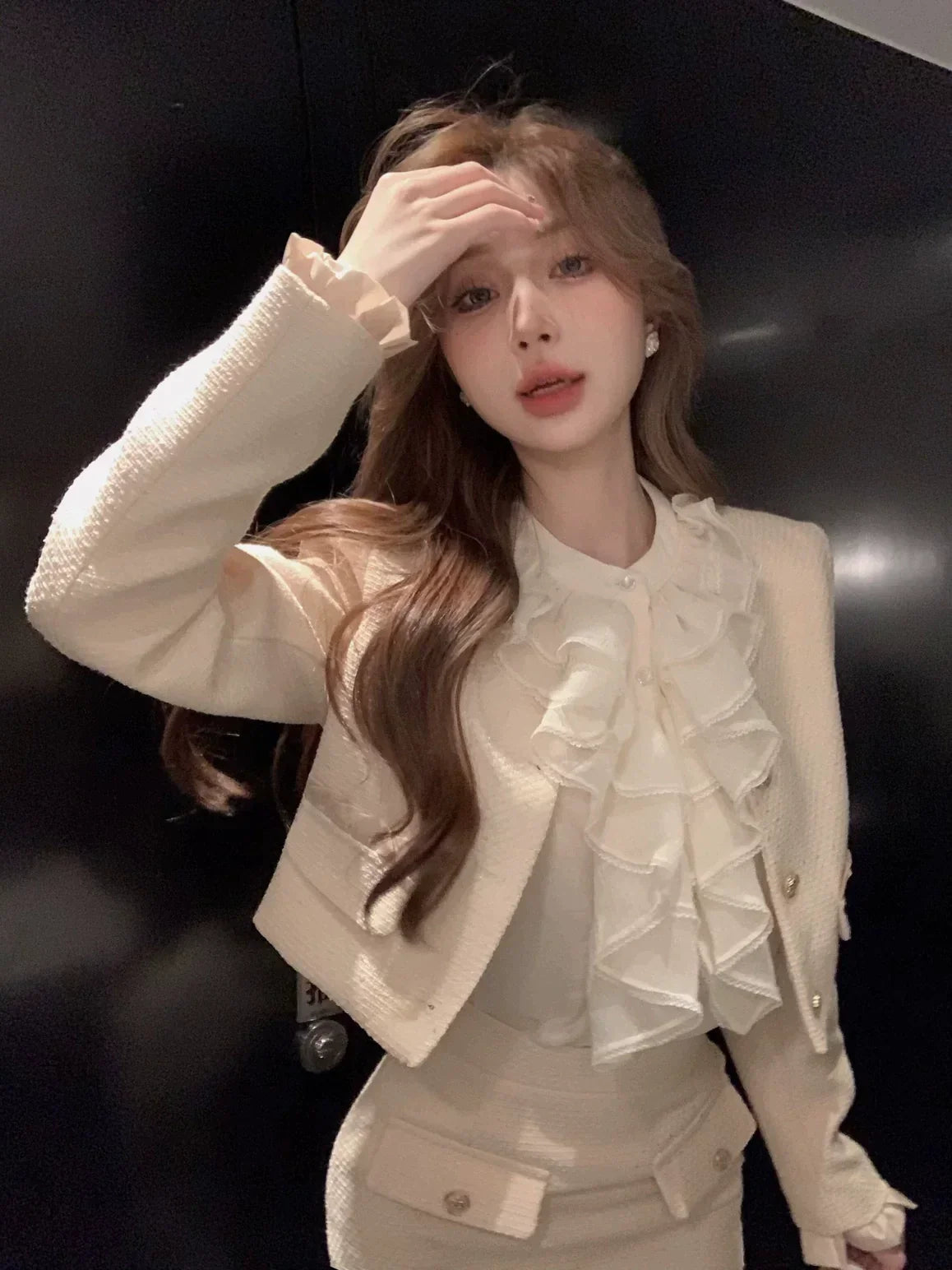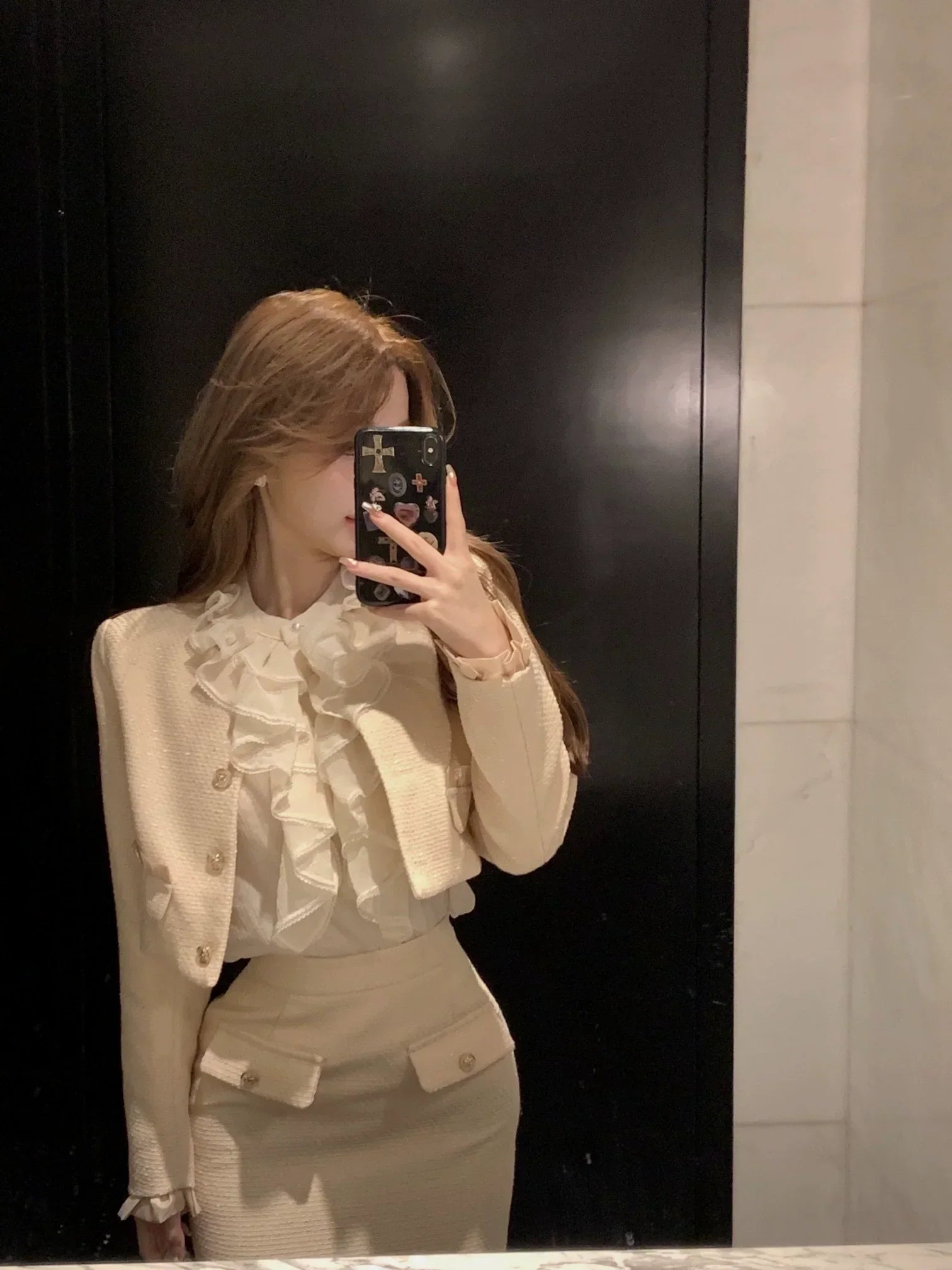 @jess.guan cozy in our Marla Top & Skirt Set + Black Bear Ears Hat 🖤