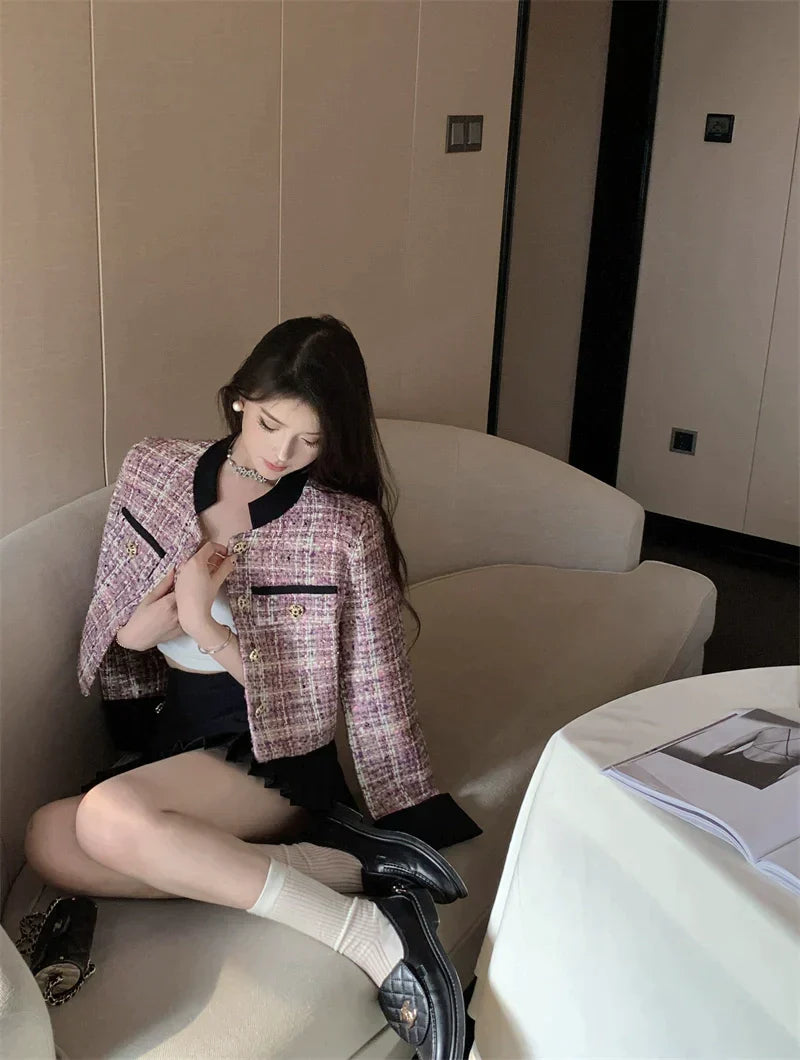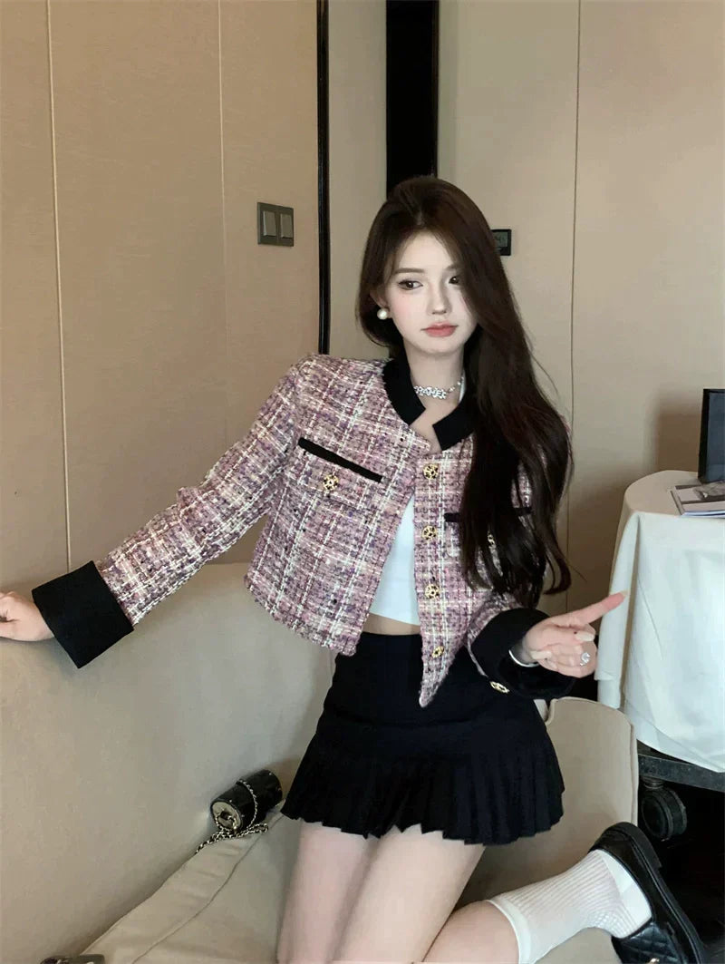@jess.guan cozy in our Marla Top & Skirt Set + Black Bear Ears Hat 🖤