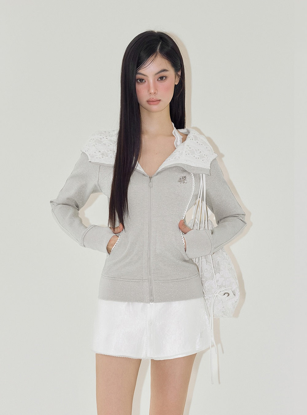 Starry Lace Stitched Hooded Sweater