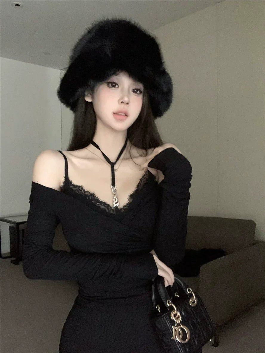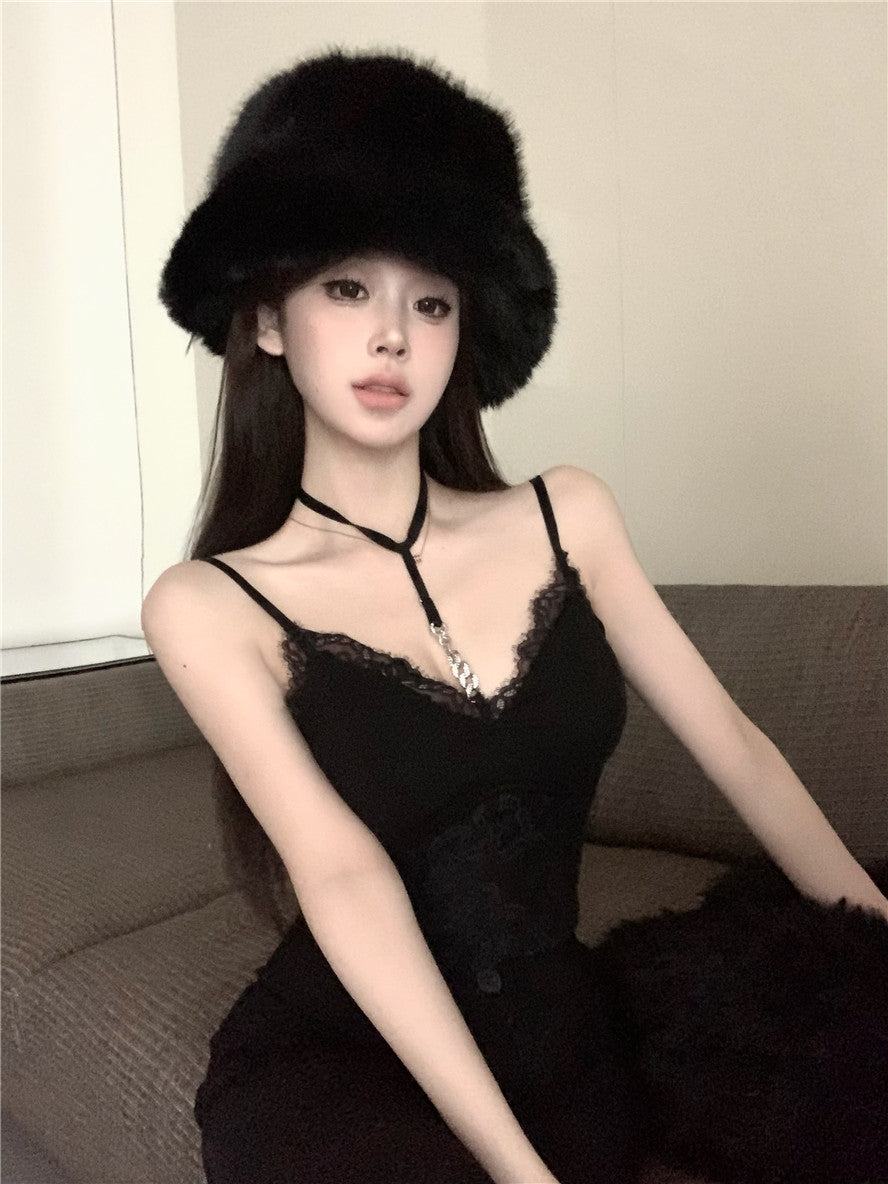 @jess.guan cozy in our Marla Top & Skirt Set + Black Bear Ears Hat 🖤