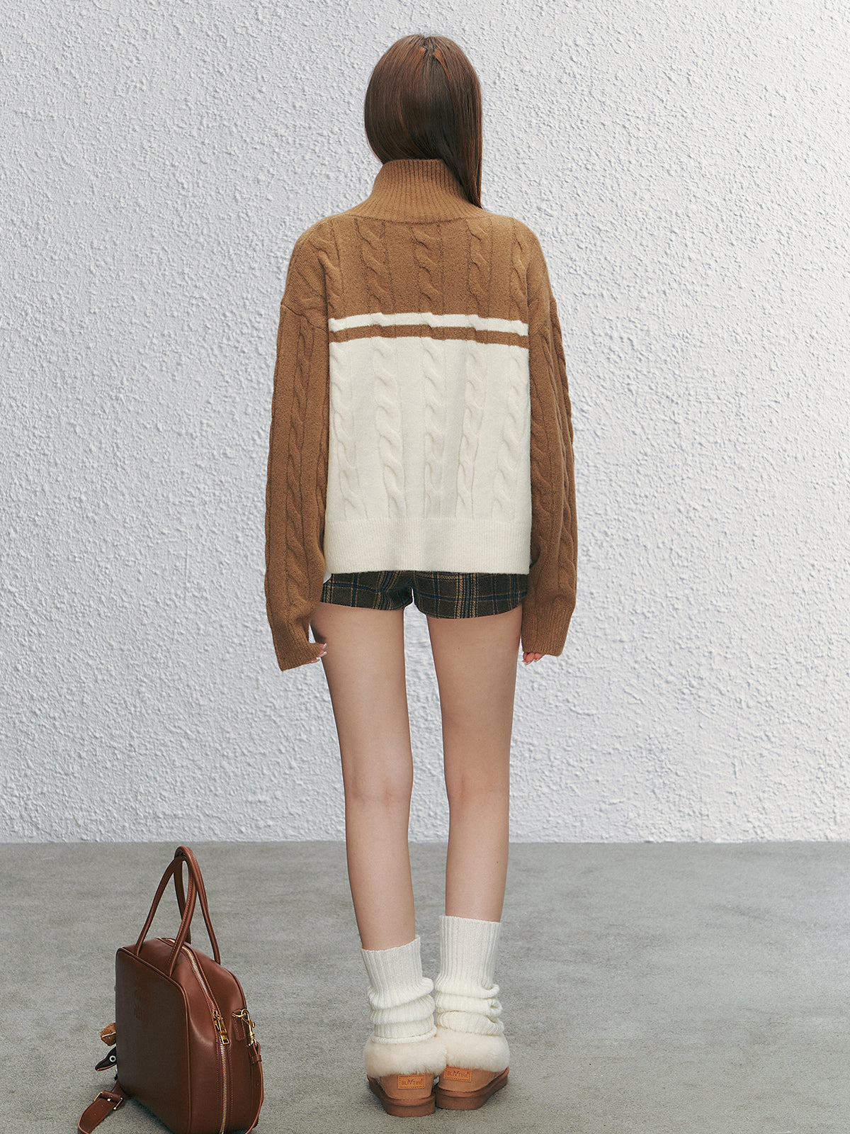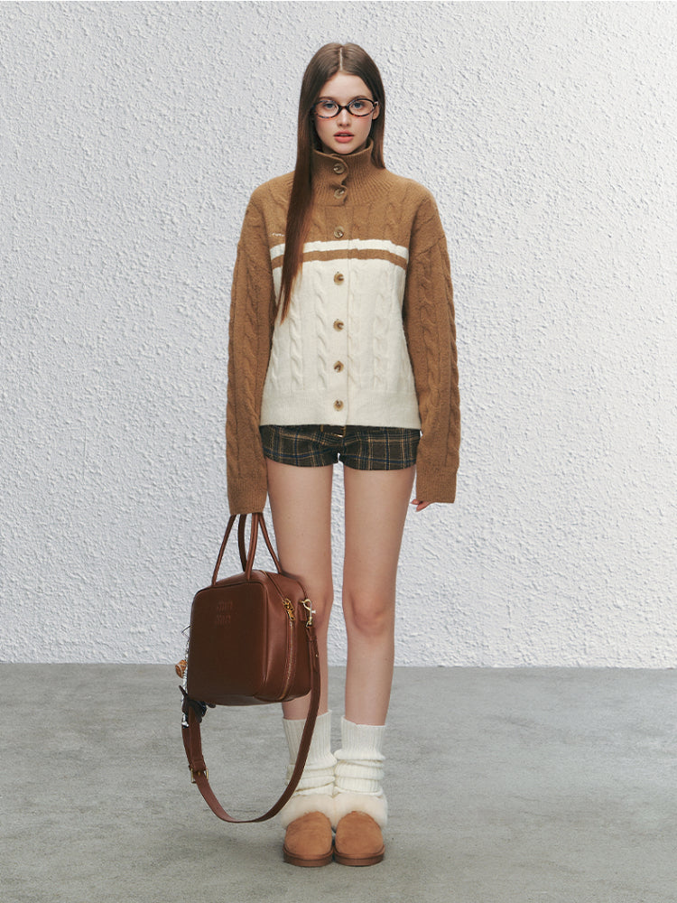 Product Name: High-neck Cable Knit Sweater Cardigan