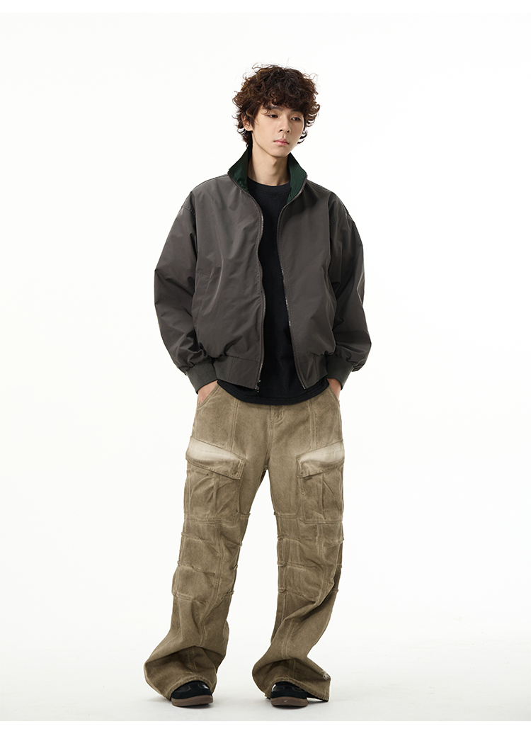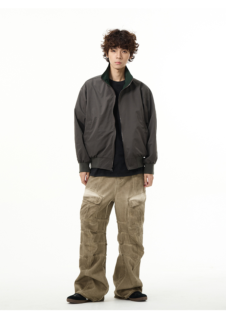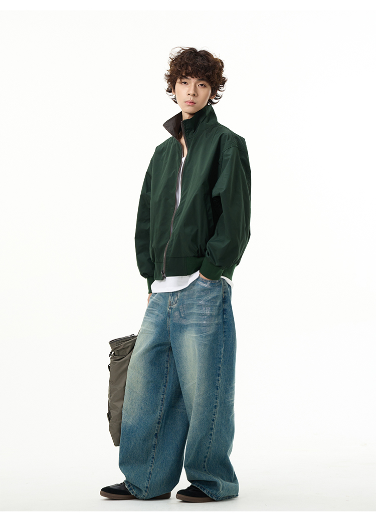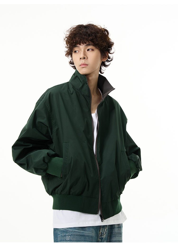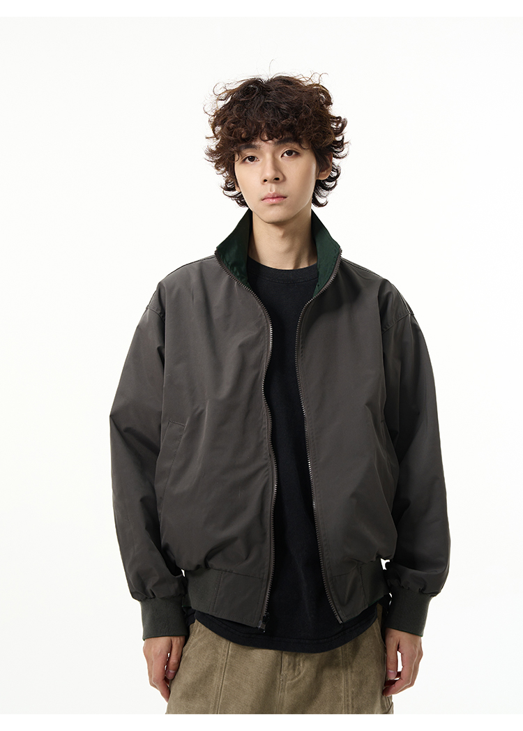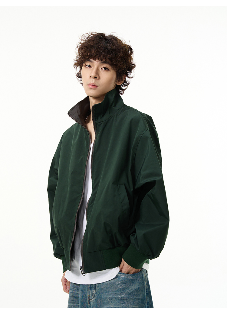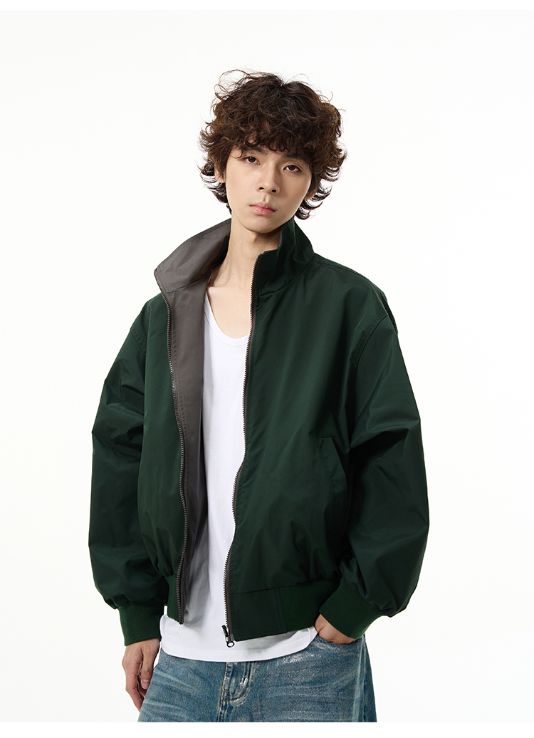 Reversible Stand Neck Zipper Jacket